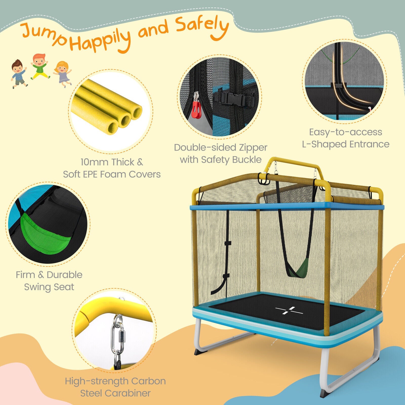 6 FT Kids Trampoline 3-in-1 Outdoor Indoor Trampoline w/ Swing & Horizontal Bar