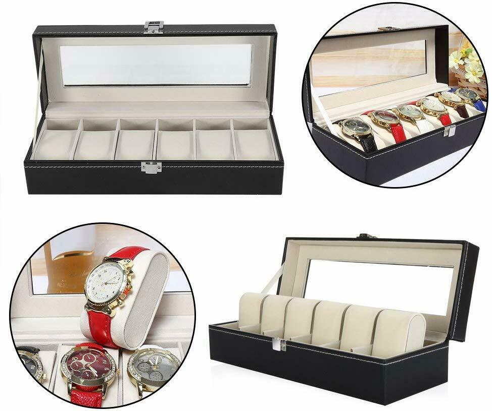 6 Grids Watch Display Storage Box Jewelry Collection Case Gift Organiser Holder