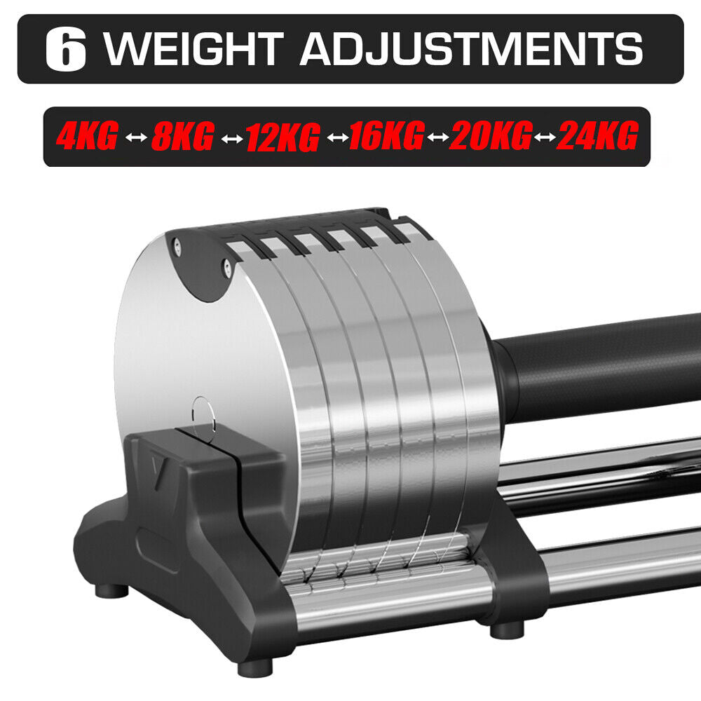 6 in 1 Adjustable Dumbbell Weight Set 24kg Lifting Gym Fitness Workout Weights