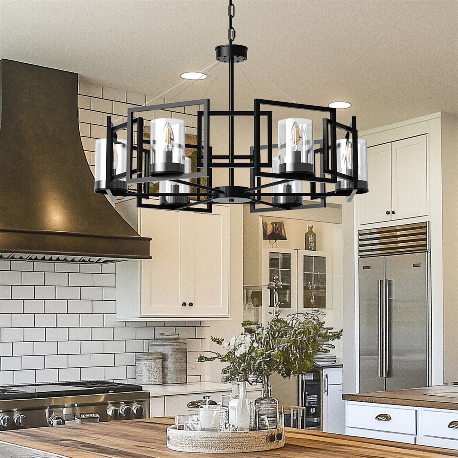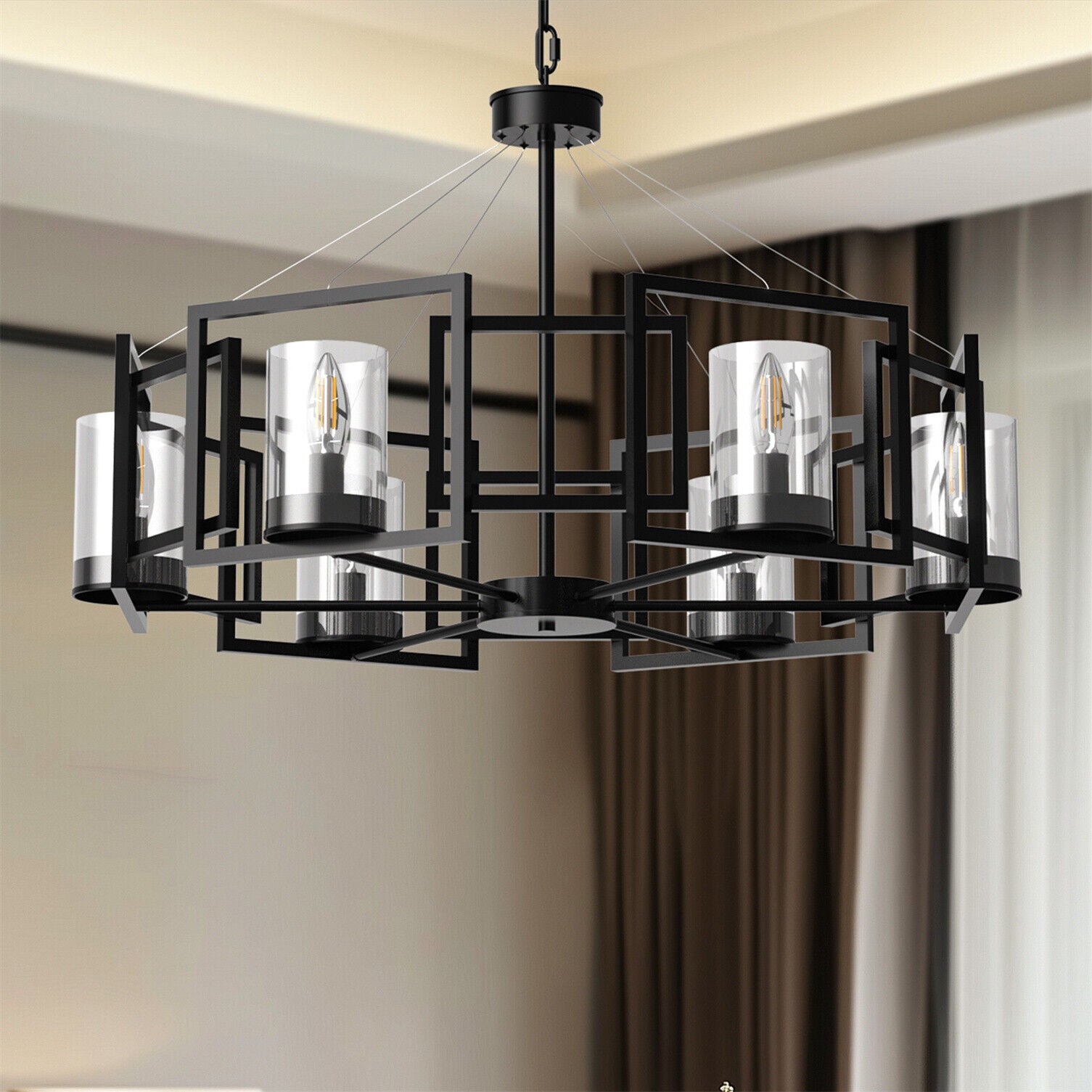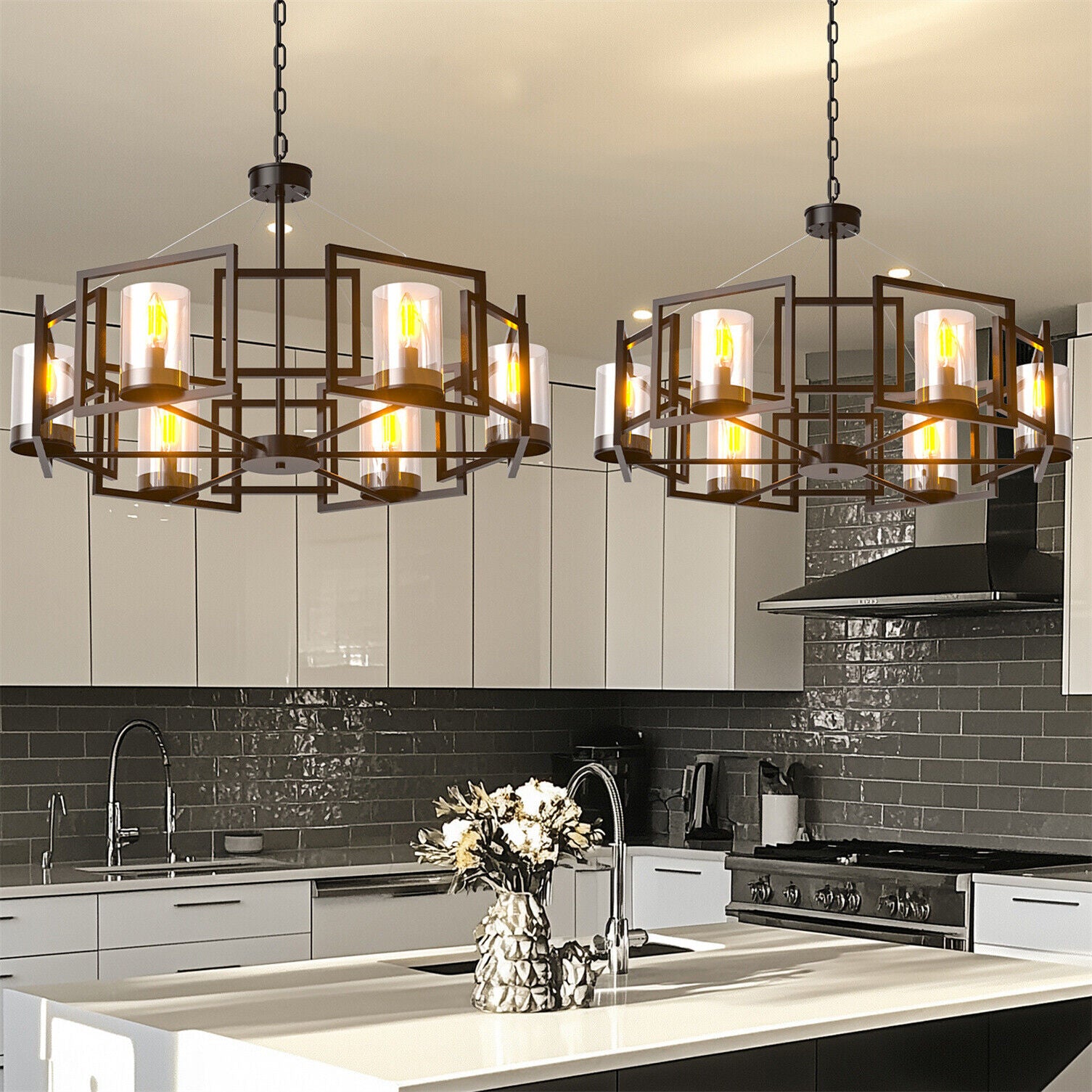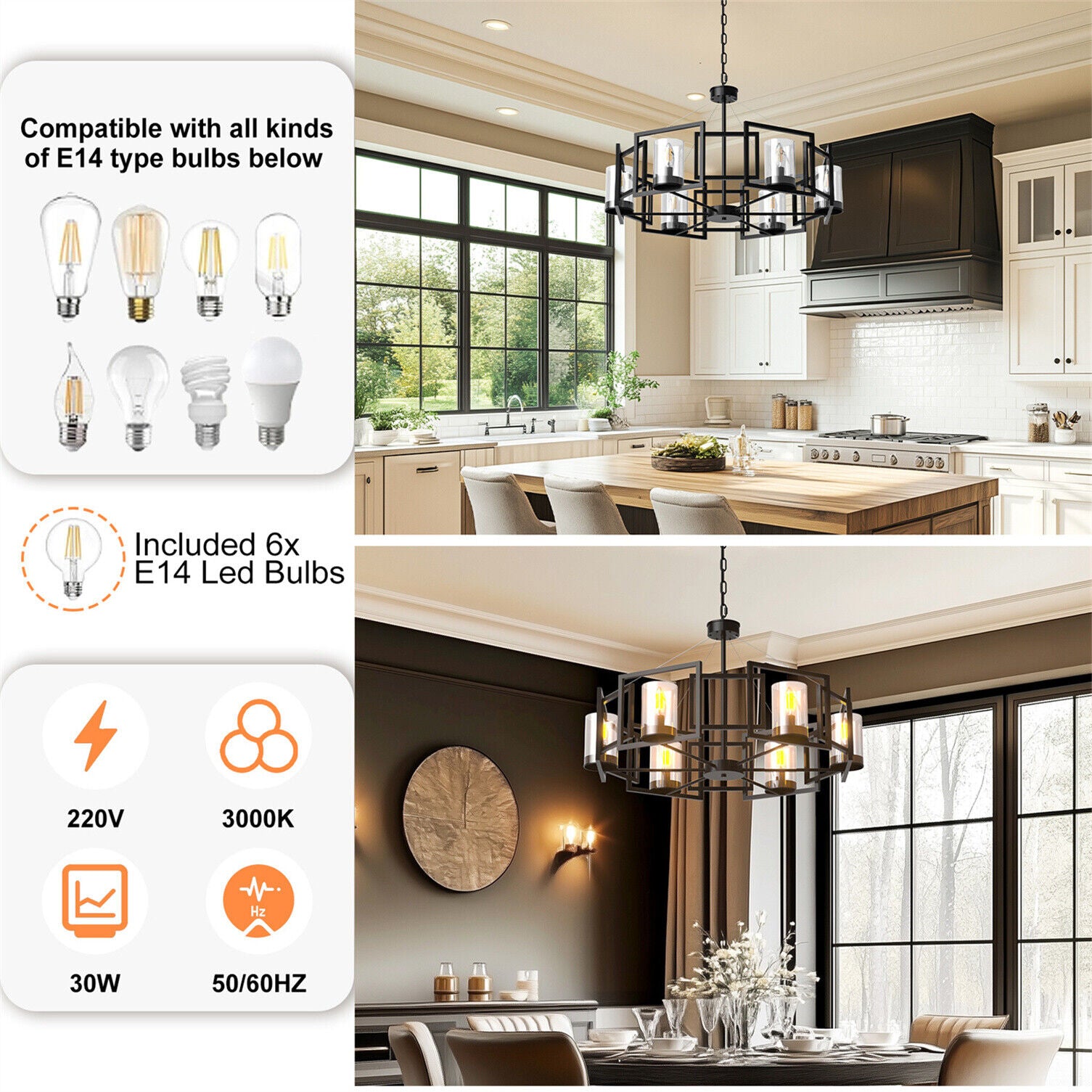 6-Light Large Wagon Wheel Chandeliers Drum Pendant Light Fixture for Dining Room