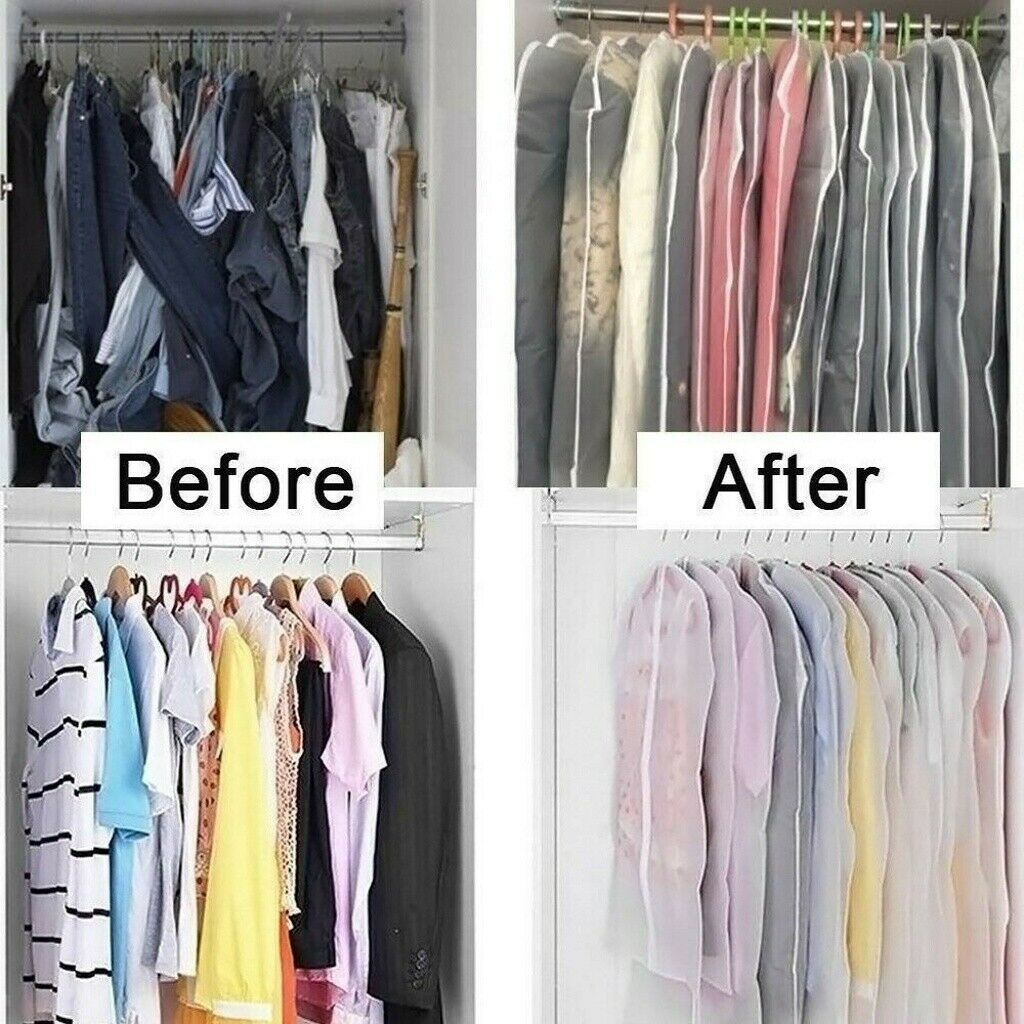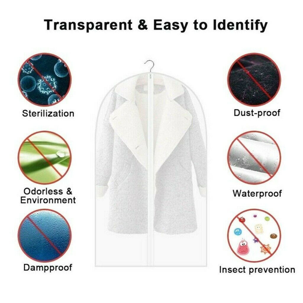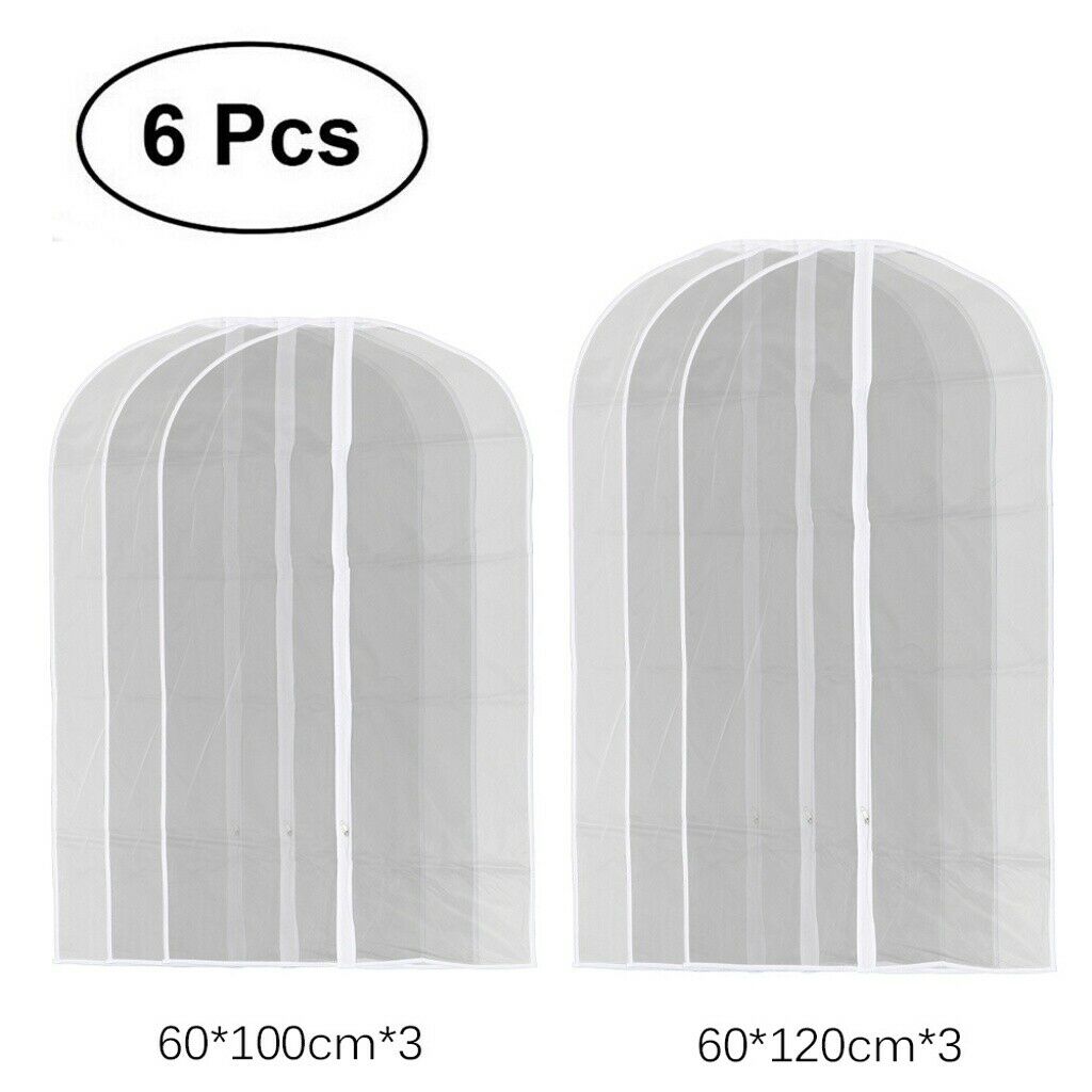 6 Pack Set Clear Polythene Garment Covers Suit Dress Coat Dust Protector Zip Bag