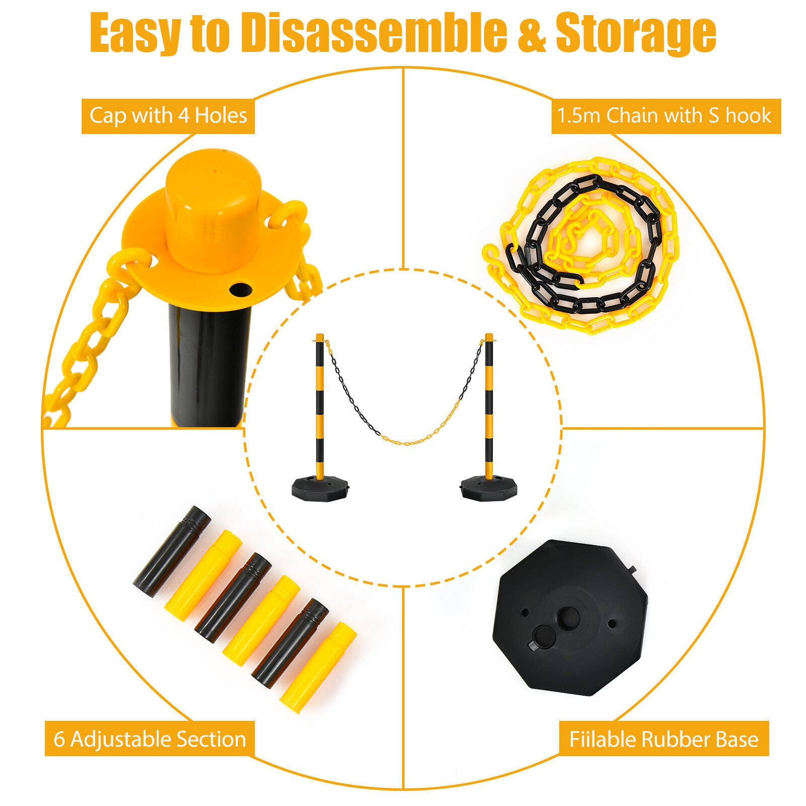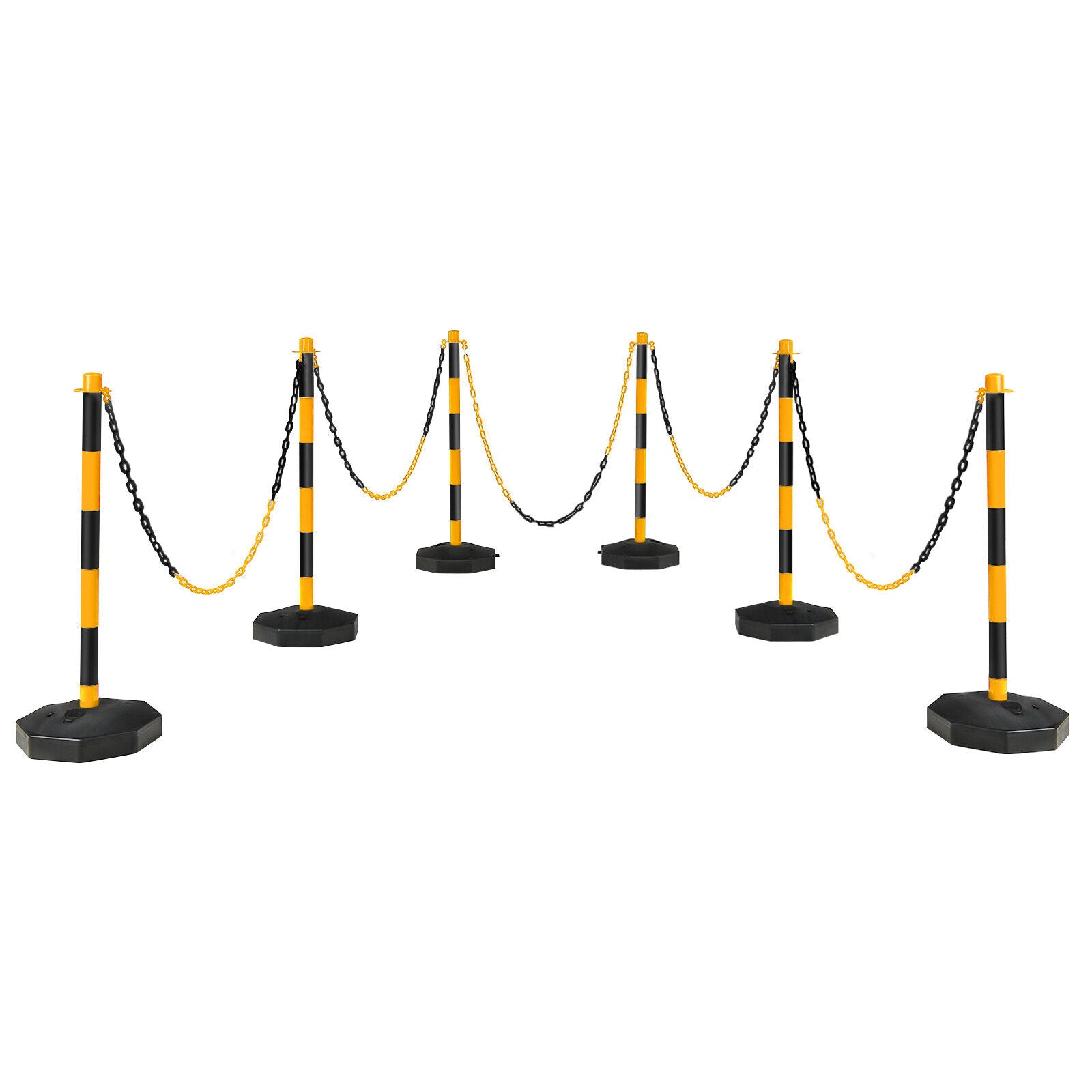 6 Pack Traffic Delineator Poles PP Safety Caution Barrier Portable Stanchions