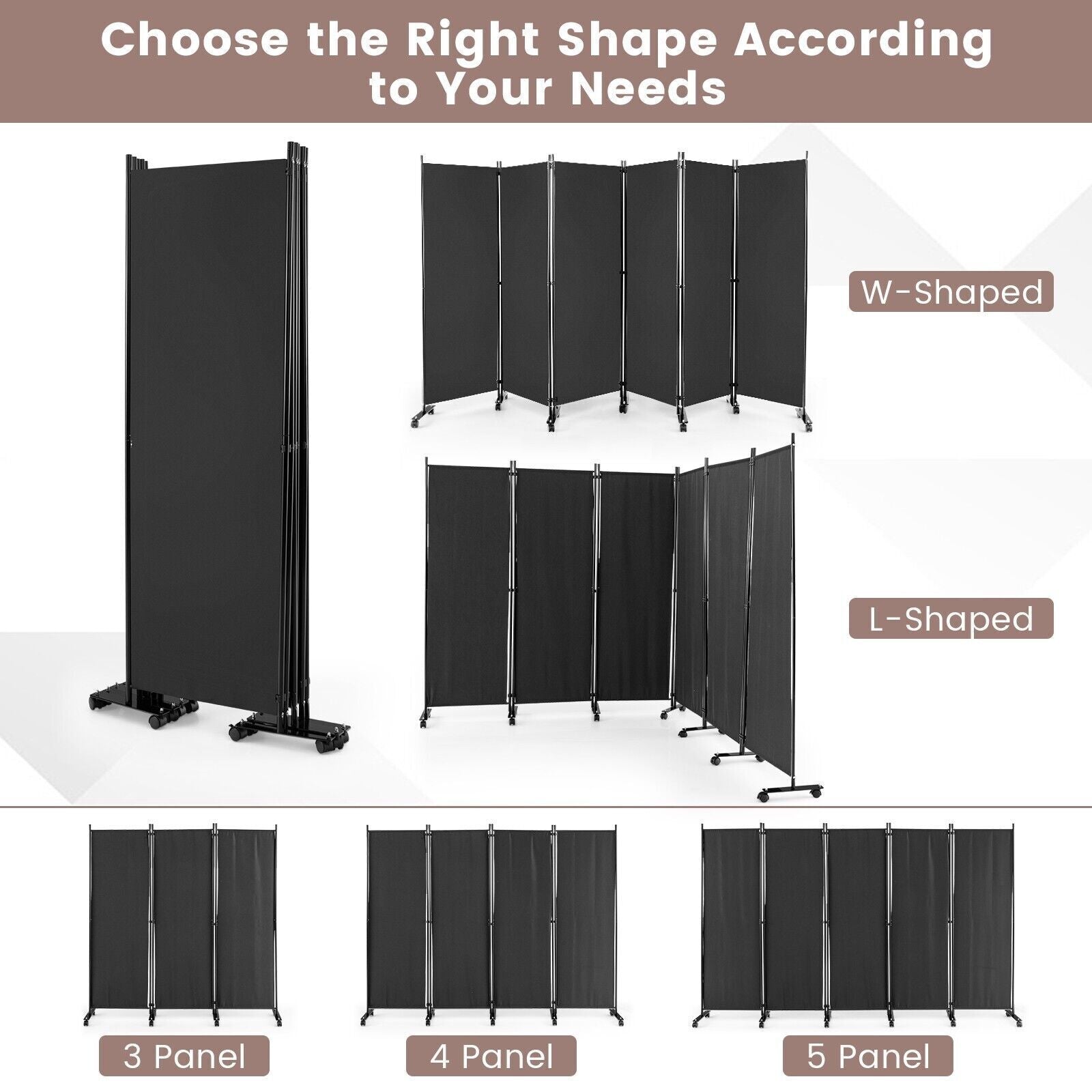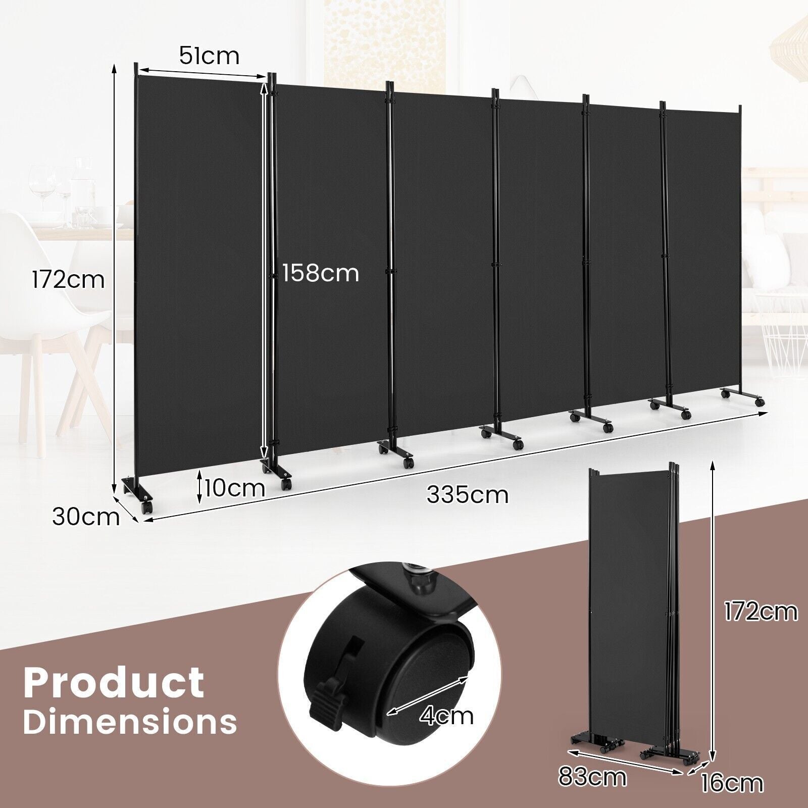 6 Panel Room Divider on Wheels Rolling Privacy Screens Portable Freestanding