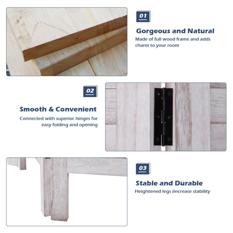 6 Panels Folding Room Divider Wooden Wall Privacy Screen Protector Home Office