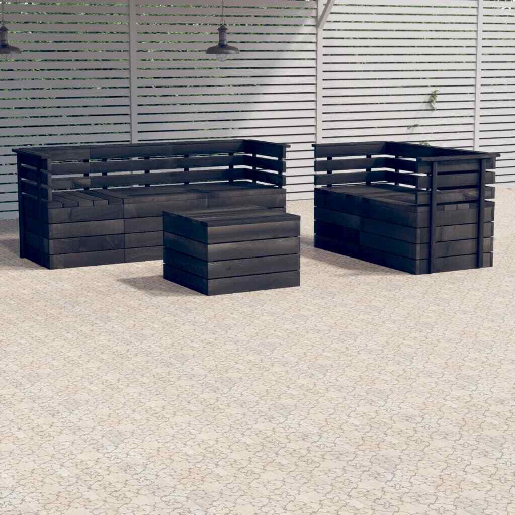 6 Piece Garden Pallet Lounge Set Solid Pinewood Dark Grey