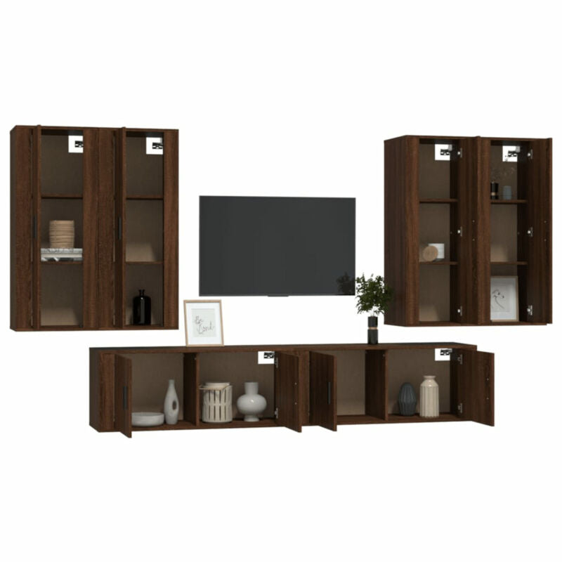 6 Piece TV Cabinet Set Brown Oak Engineered Wood S1R8