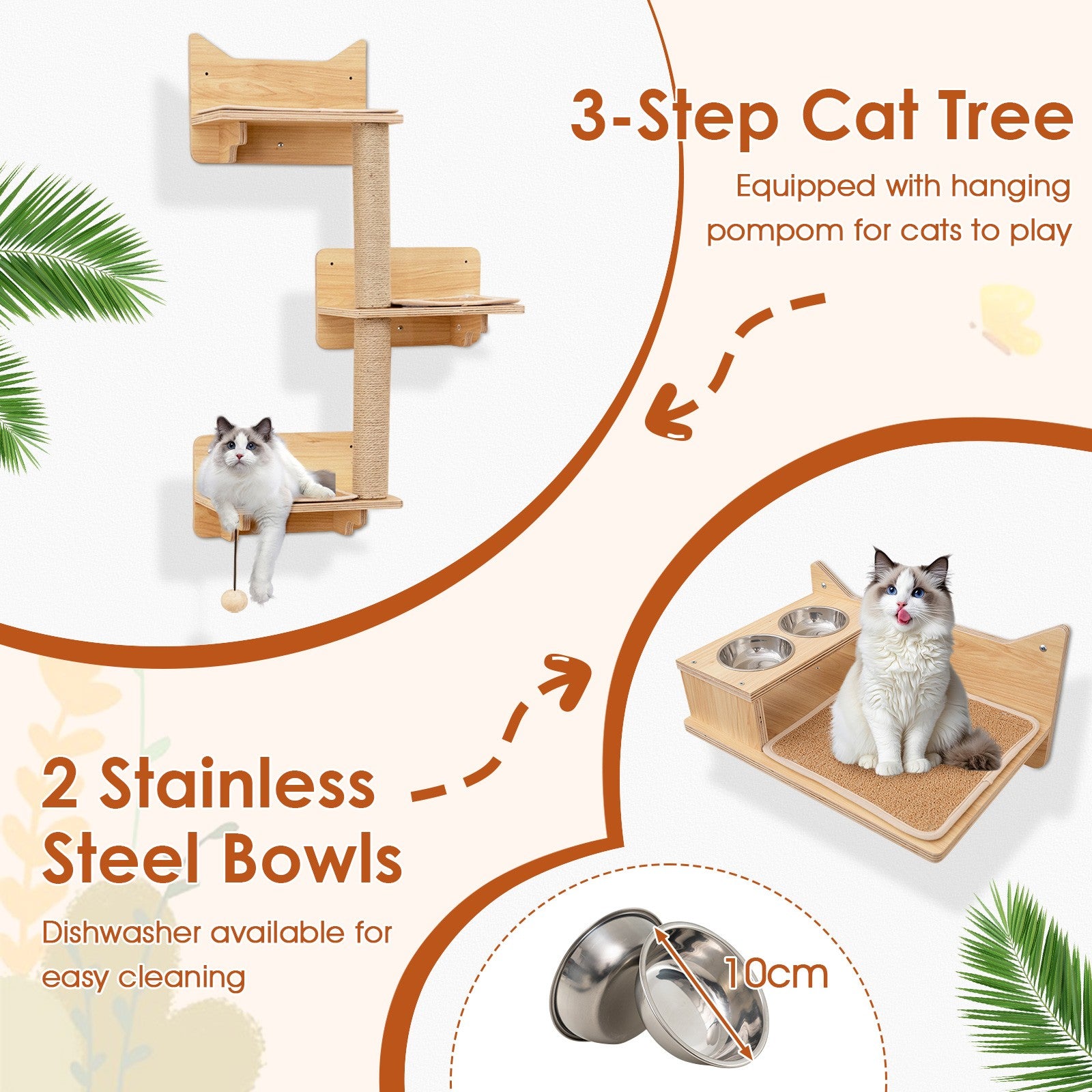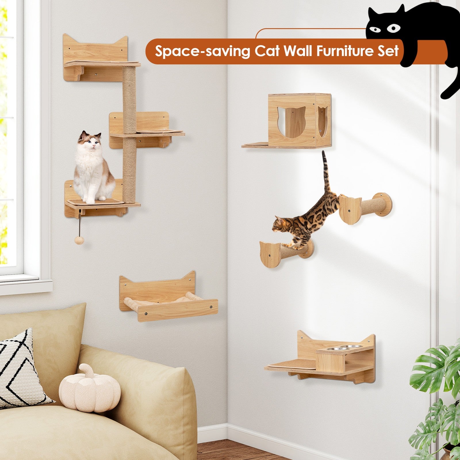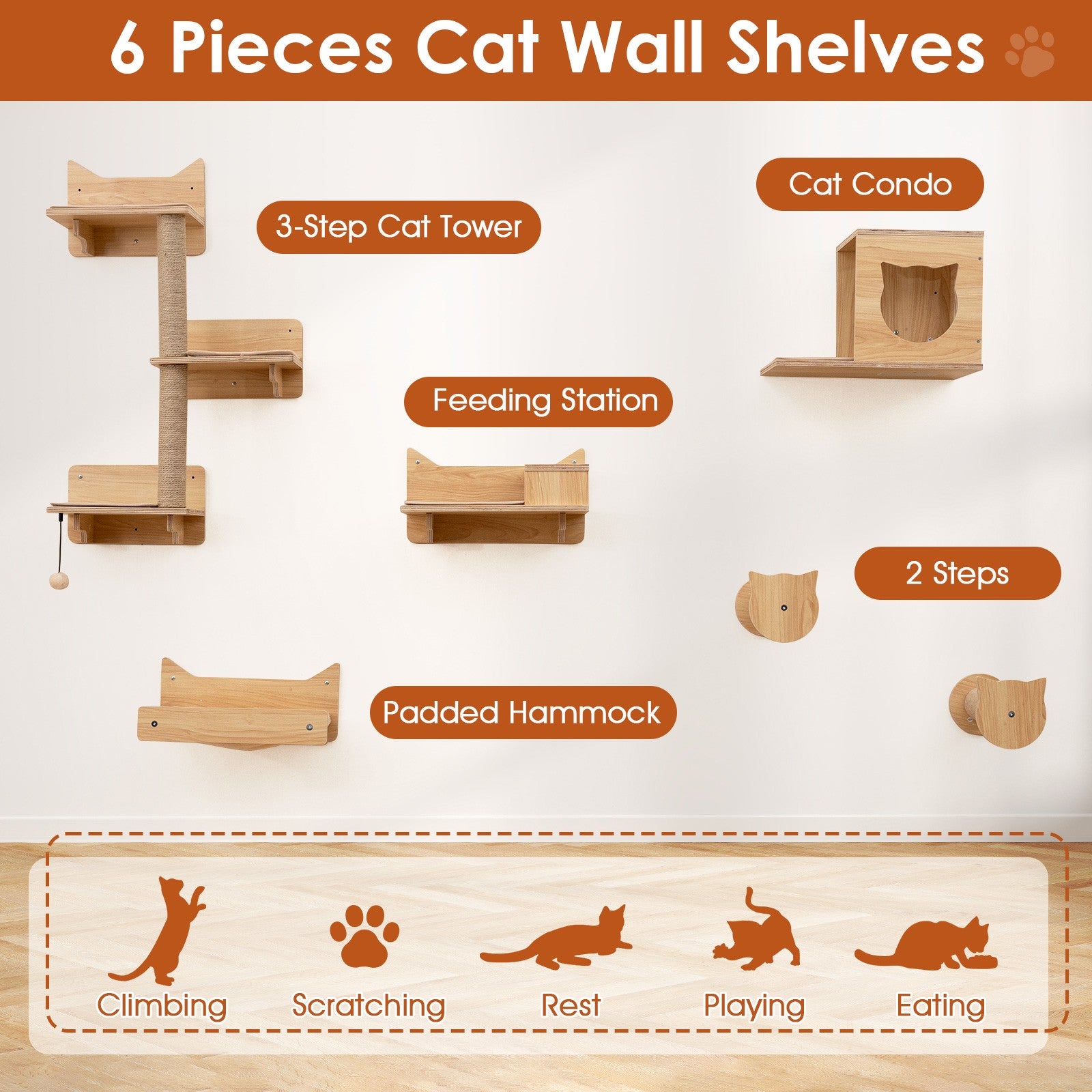 6 Pieces Cat Wall Furniture Set Wall Mounted Shelves 3-step Cat Tree
