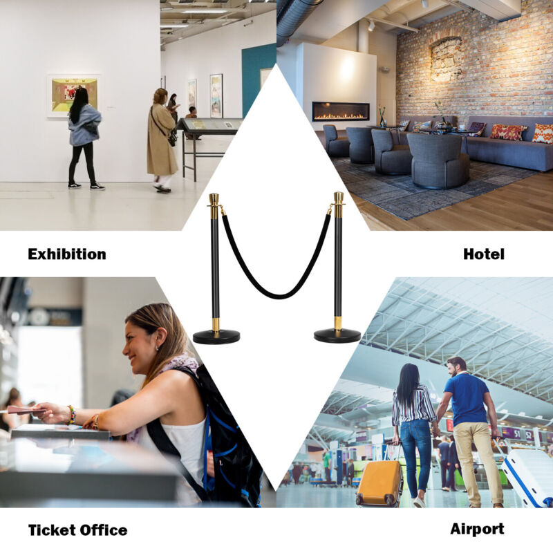 6 Polished Steel Queue Rope Barrier Posts Stands Crowd Control Stanchion 1.5M