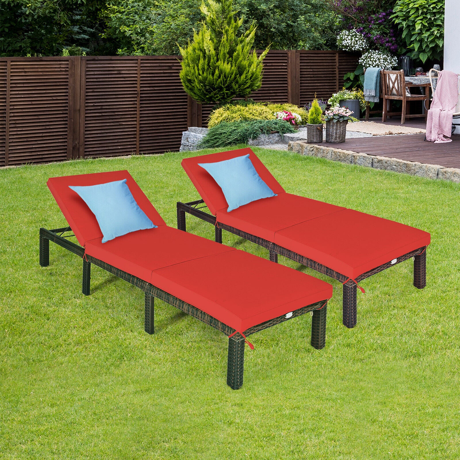 6-Positions Adjustable Rattan Sun Lounger Deck Chaise Sunbed w/Removable Cushion