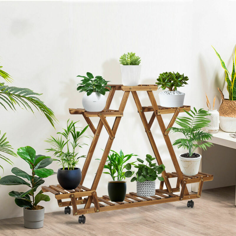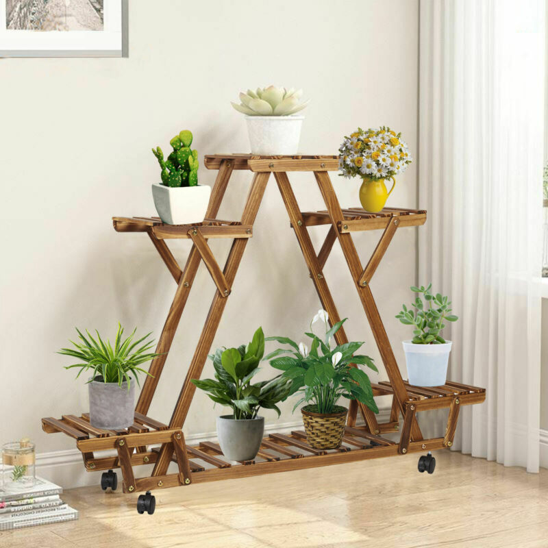 6 Pots Wood Plant Stand Sturdy Triangular Plant Shelf Flower Stand Storage Rack