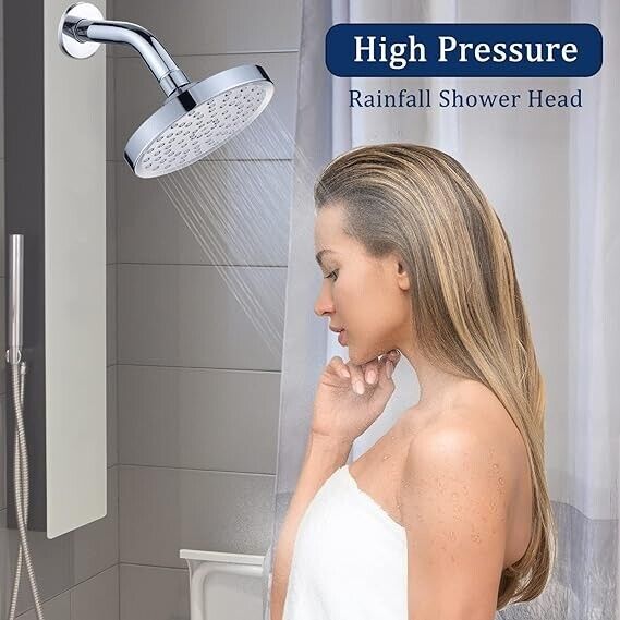 6" Round Shower Head Chrome plastic shower Rainfall Overhead Bathroom Large UK