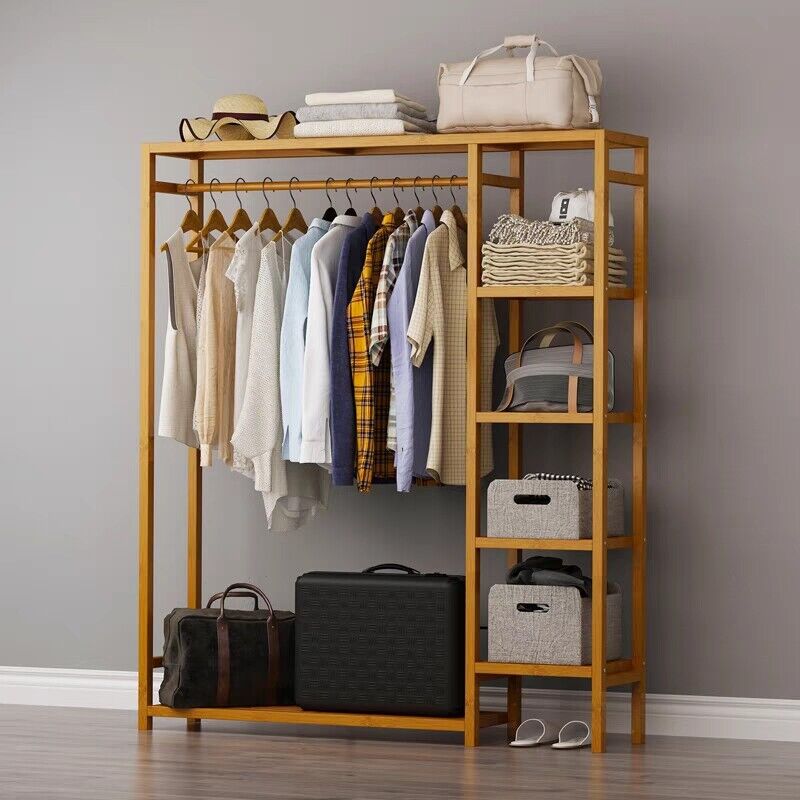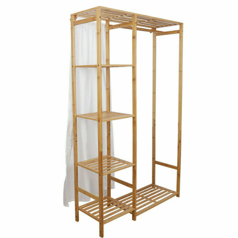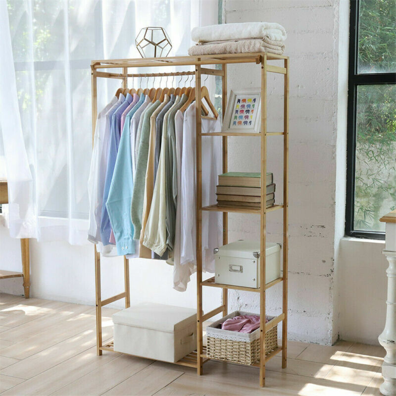 6 Tier Bamboo Garment Rack Storage Shelves Clothes Hanging Wardrobe Closet Stand