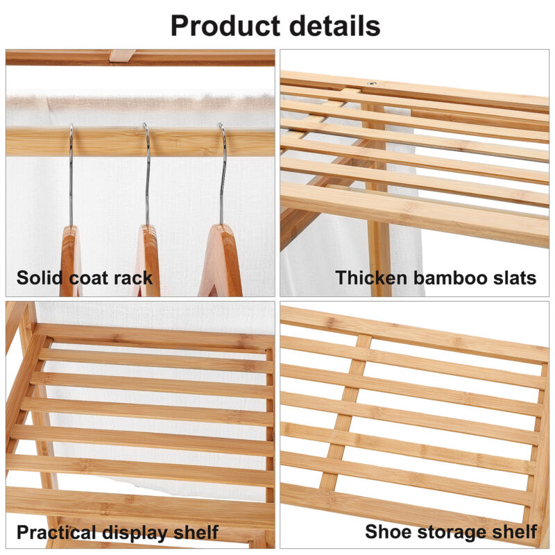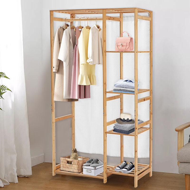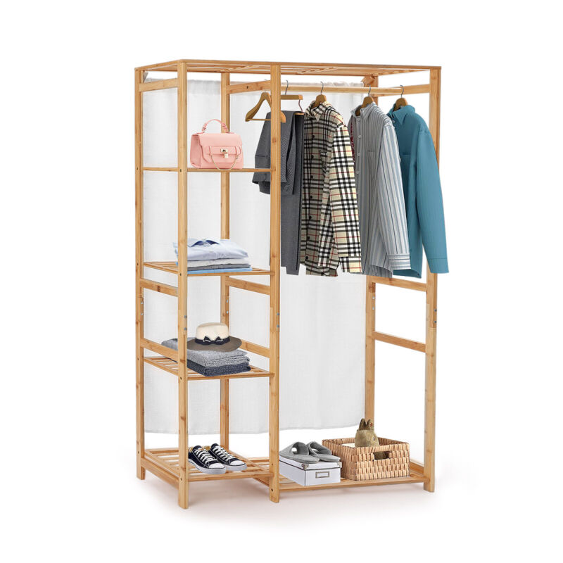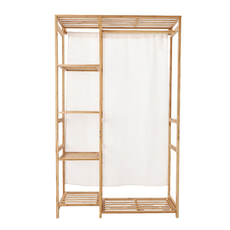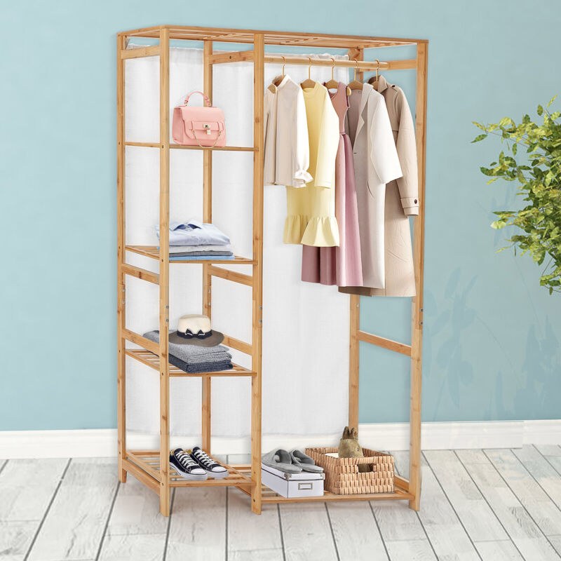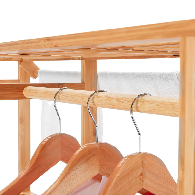 6 Tier Bamboo Garment Rack Storage Shelves Clothes Hanging Wardrobe Closet Stand