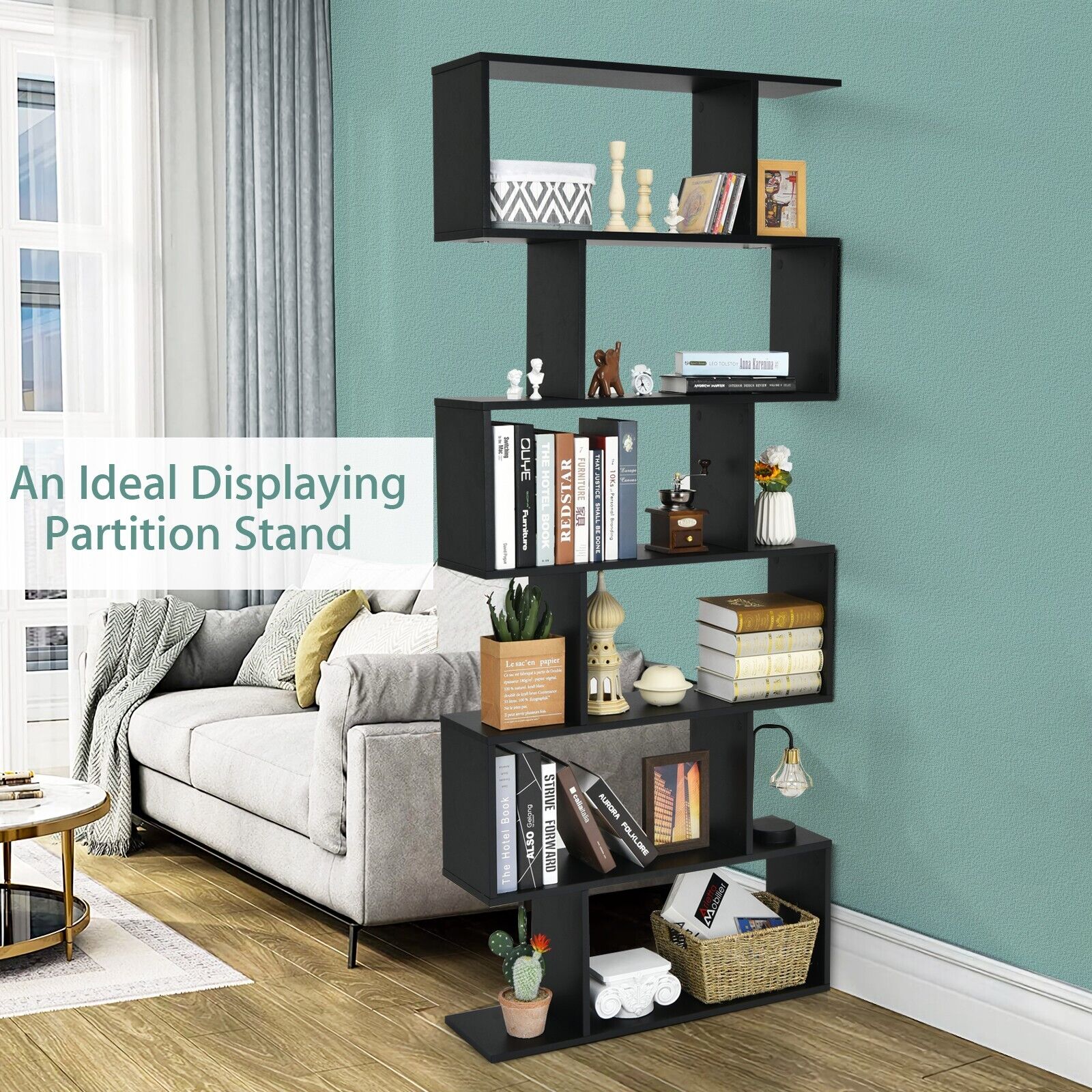 6-tier Bookcase Industrial S-Shaped Bookshelf Wooden Storage Display Rack