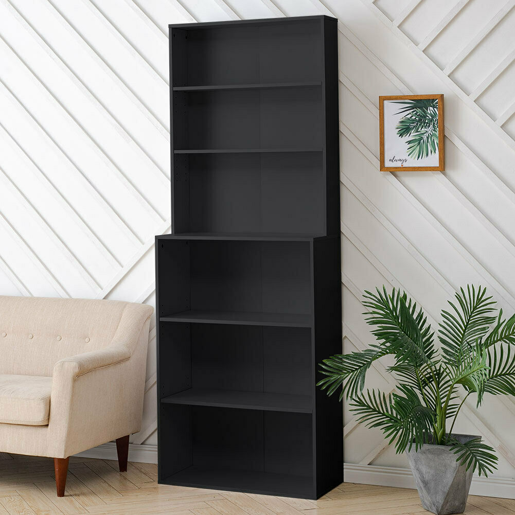 6 Tier Bookcase Wooden Storage Bookshelf Shelving Unit Adjustable Home Office