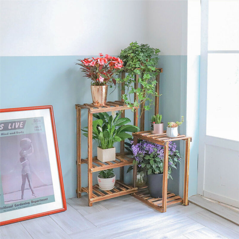 6 Tier Corner Shelf Shelving Rack Unit Display Stand Decora Plants Natural Wood