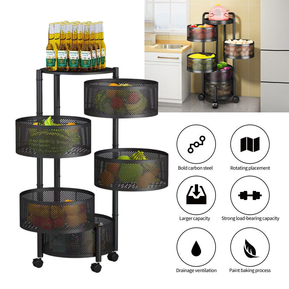 6 Tier Kitchen Rotating Vegetable Mobile Shelf Rack Storage Trolley Cart Utility