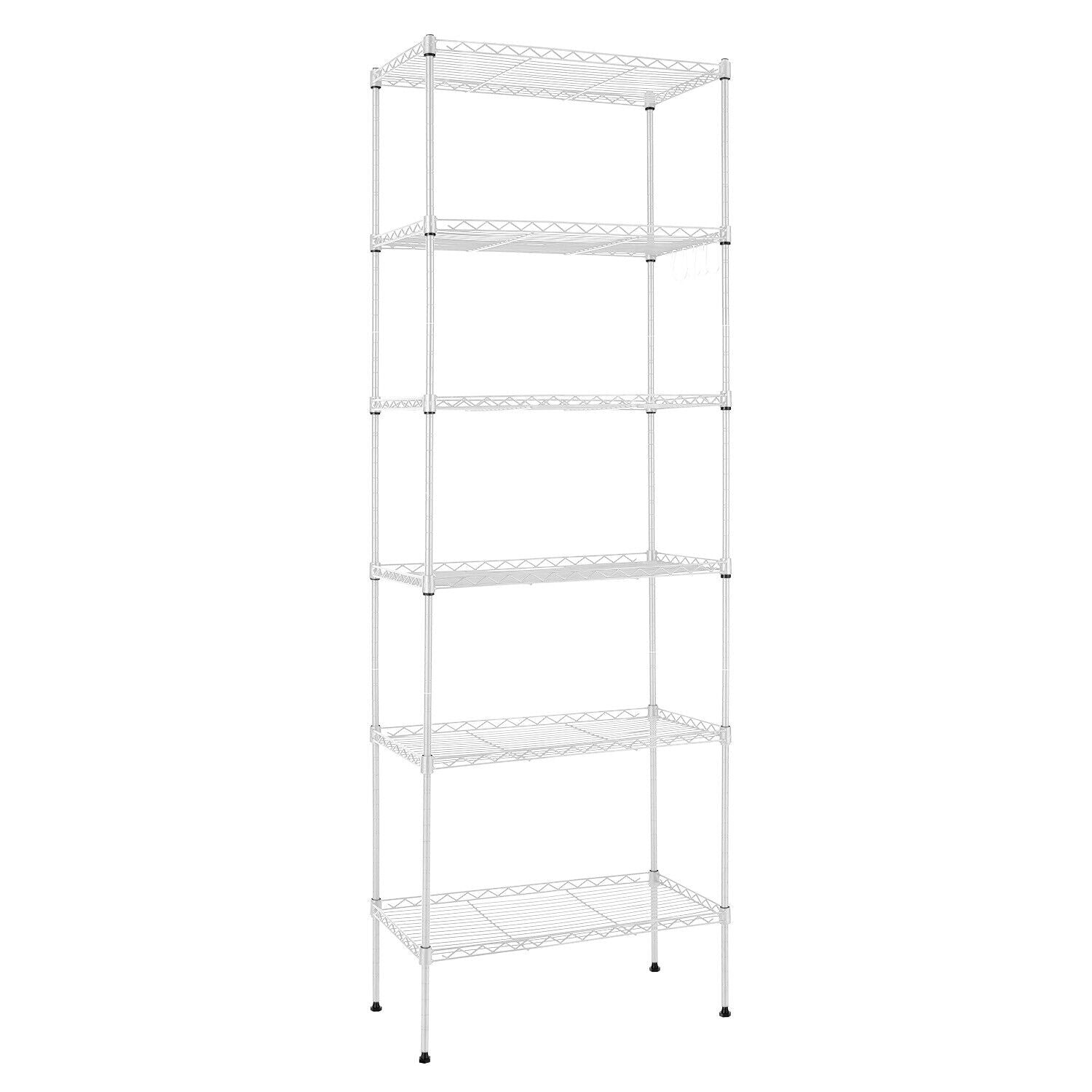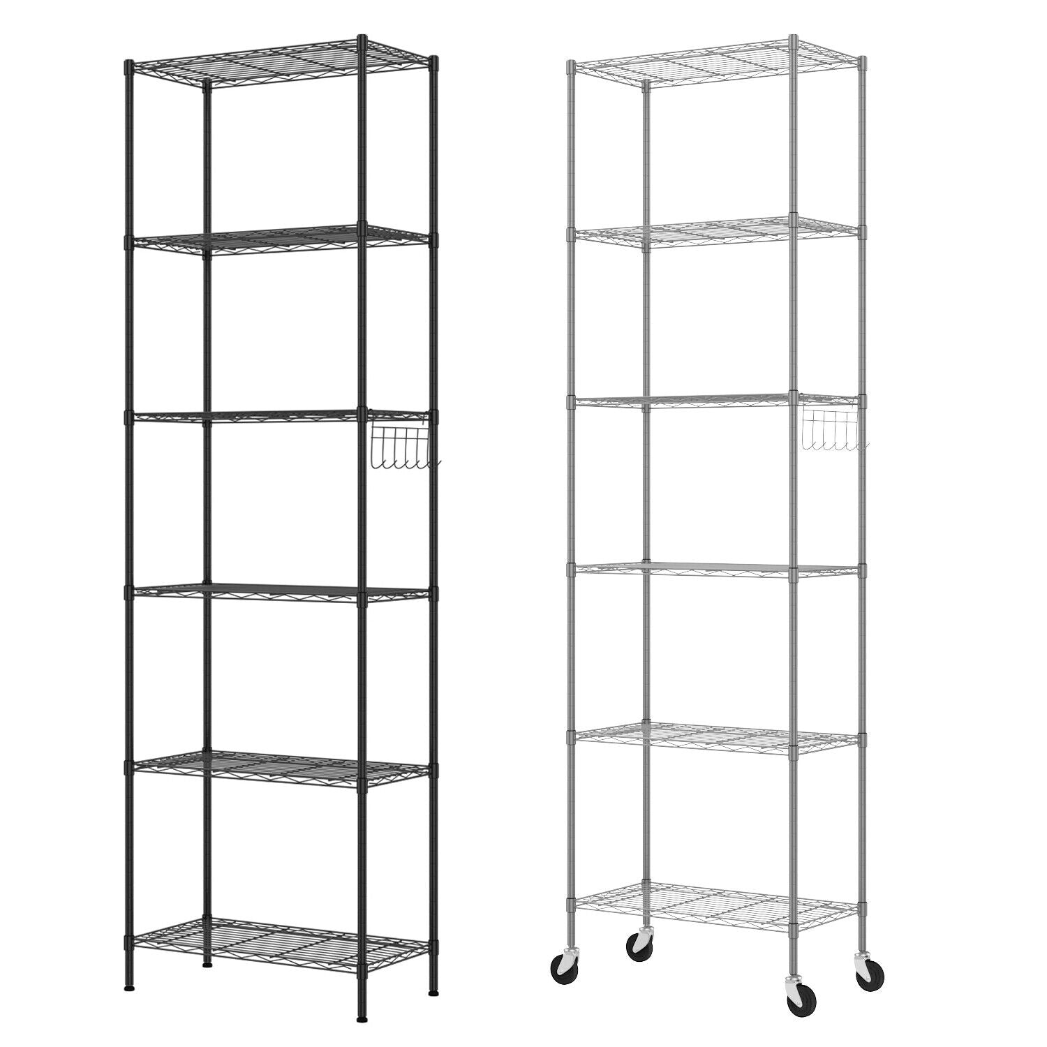 6 Tier Metal Storage Rack Shelving Wire Shelf Kitchen Office Unit Stand w/Wheels