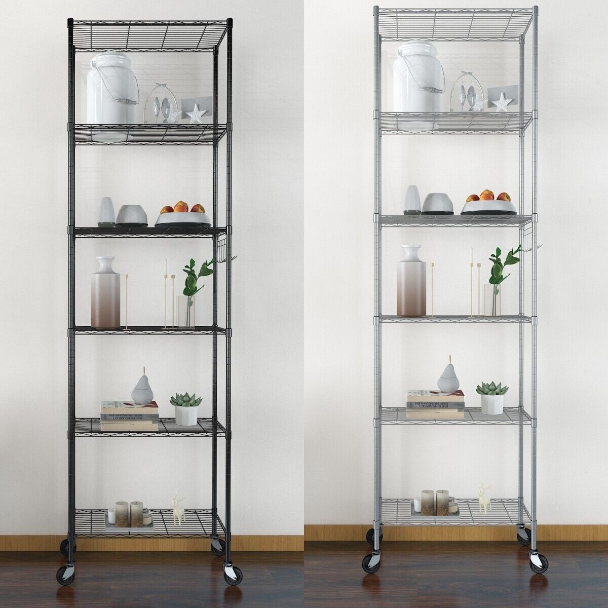 6 Tier Shelving Unit Metal Storage Rack Kitchen Bathroom & Garage Standing Shelf