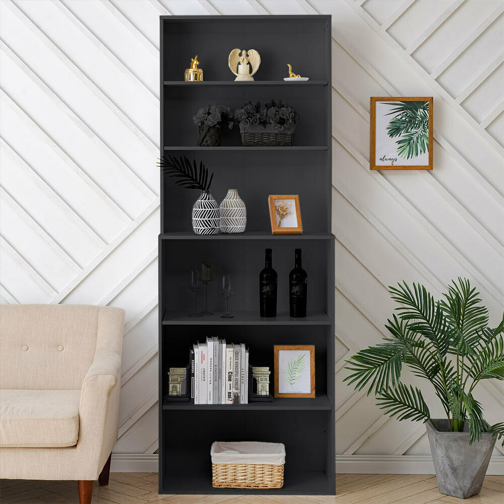 6 Tier Wooden Bookcase Bookshelf Tall Shelving Unit Home Office Study Cabinet