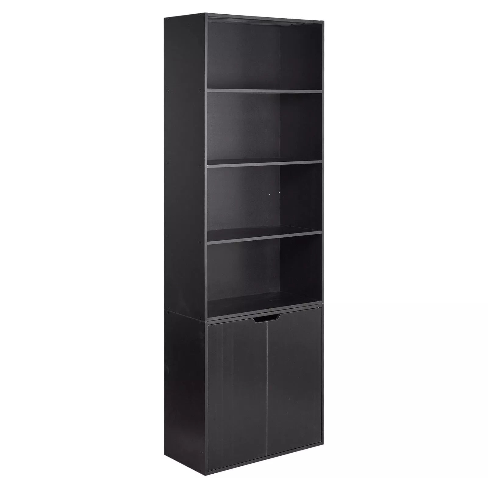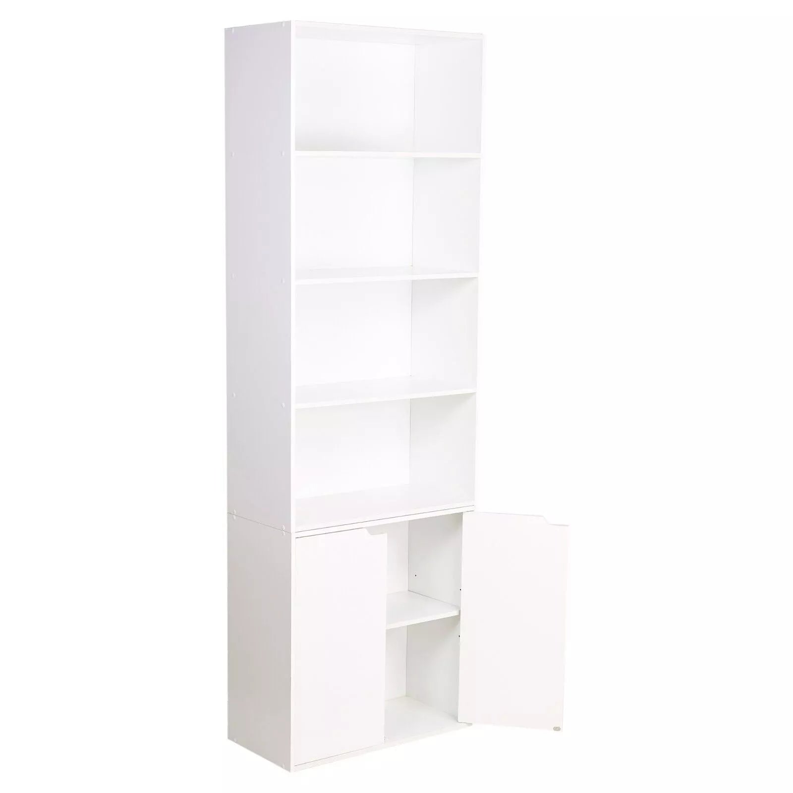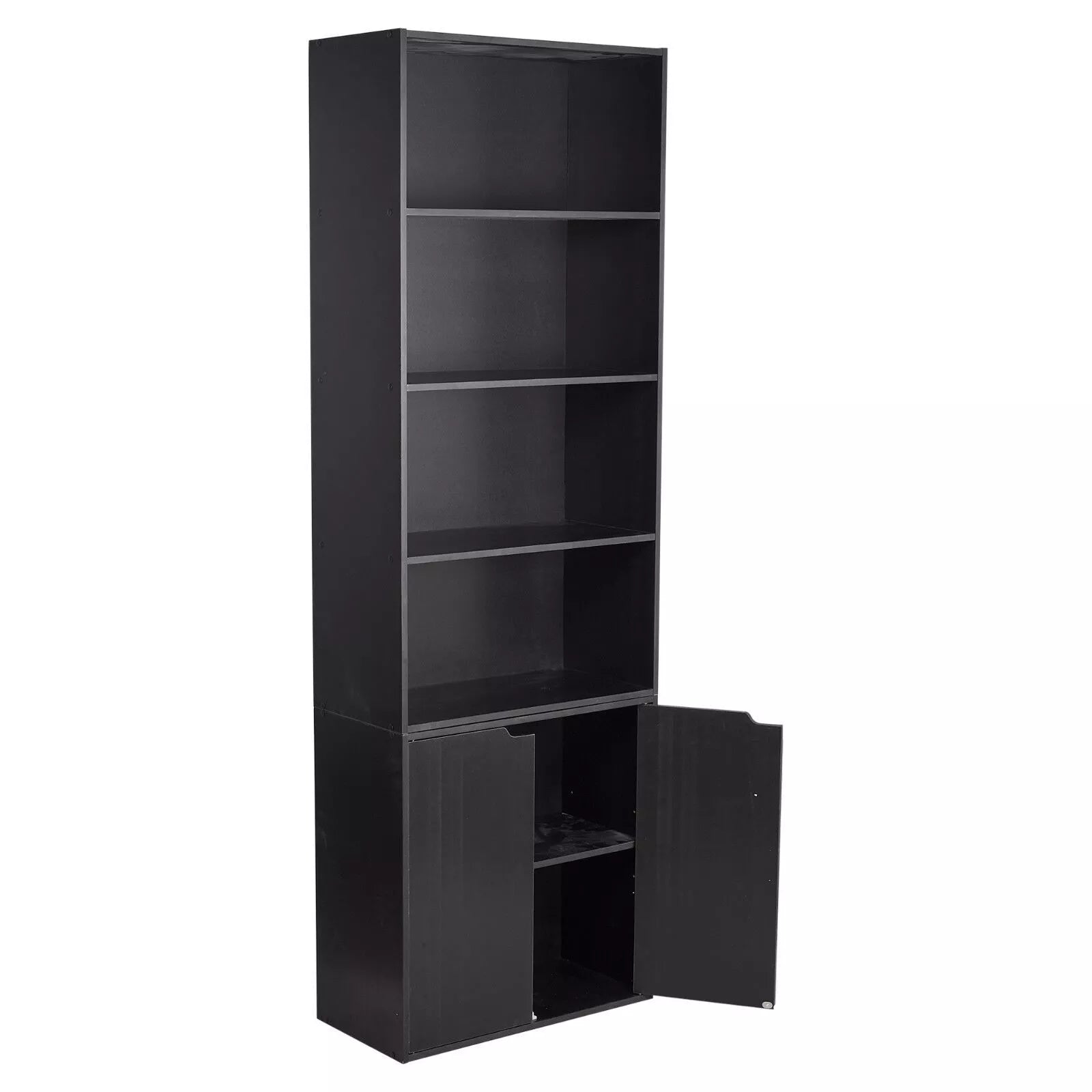 6 Tier Wooden Bookcase Bookshelf with Doors Storage Cabinet Office Shelving Rack