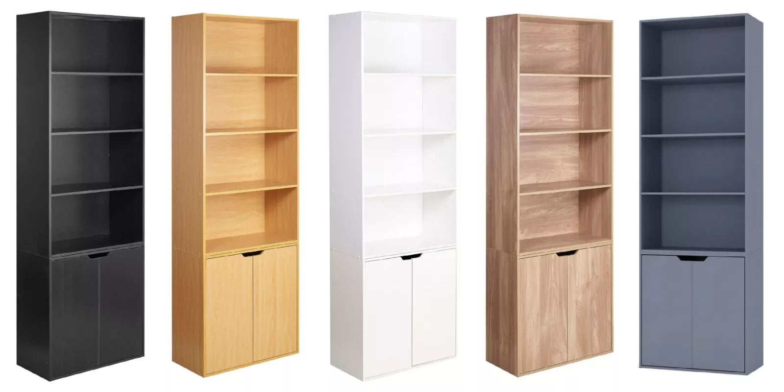 MPN 6 Tier Bookshelf , with Doors, Wooden Bookcases , Shelving , Unit, Free Standing , Display ,