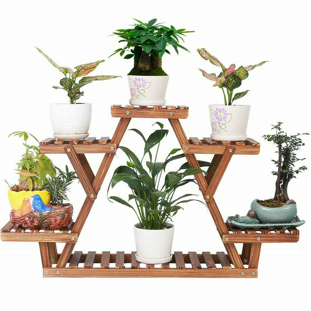 6 Tiered Stable Triangular Structure Wood Plant Stand Shelf Outdoor Corner Rack