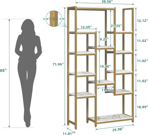 6 Tiers Bookcase Free Standing Bookshelf Book Storage Shelves for Living Room