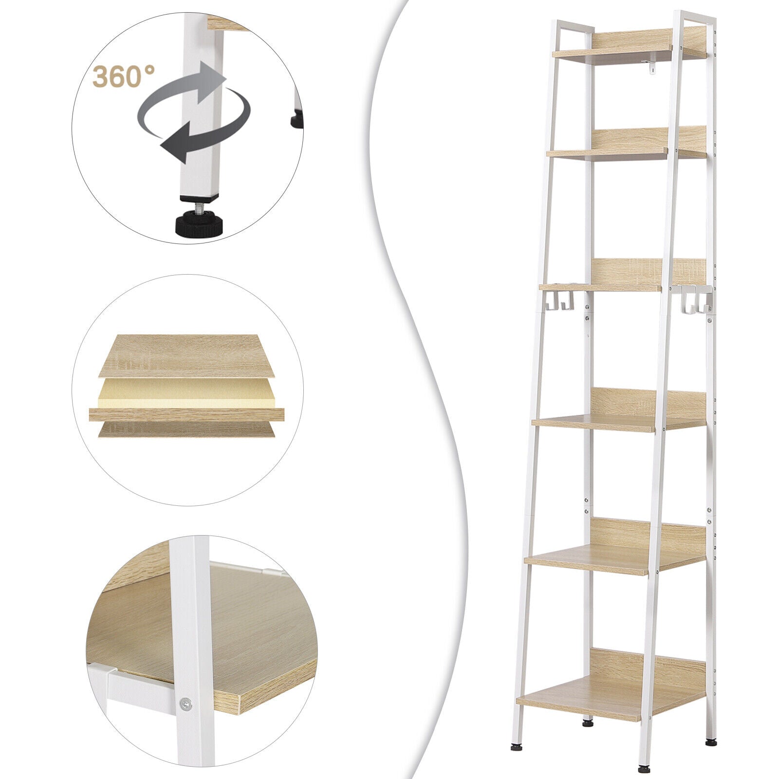 6 Tiers Bookshelf Ladder Display Storage Shelving Kitchen Plant Unit with Hook