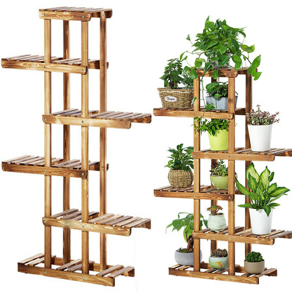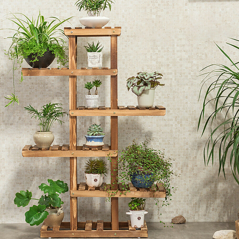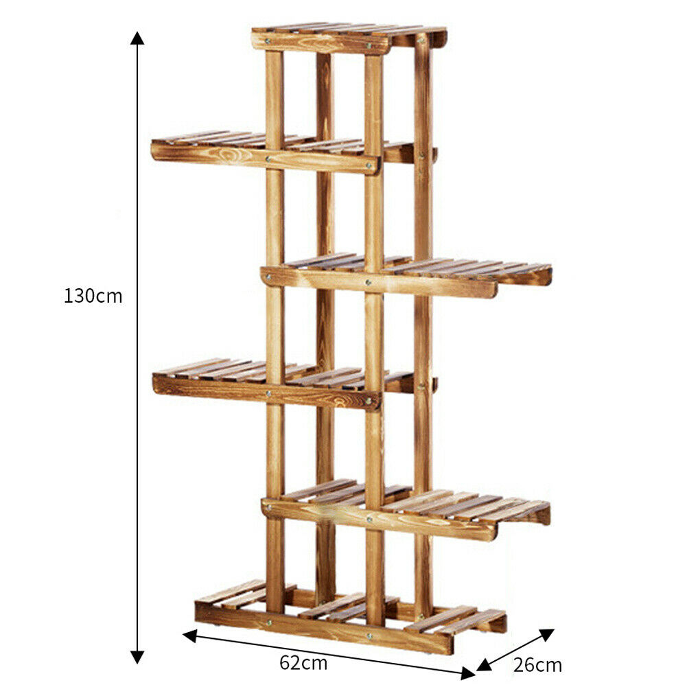 6 Tiers High Wood Plant Display Stand Shelf Garden Patio Planter Flower Pot Rack