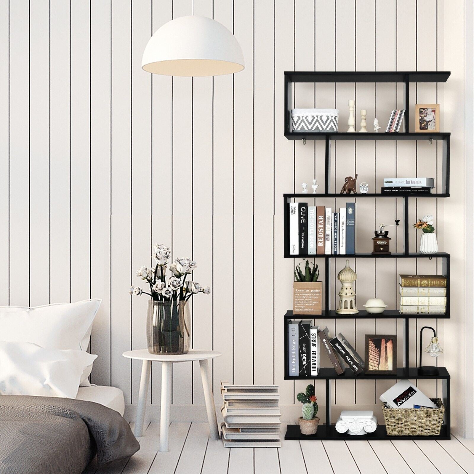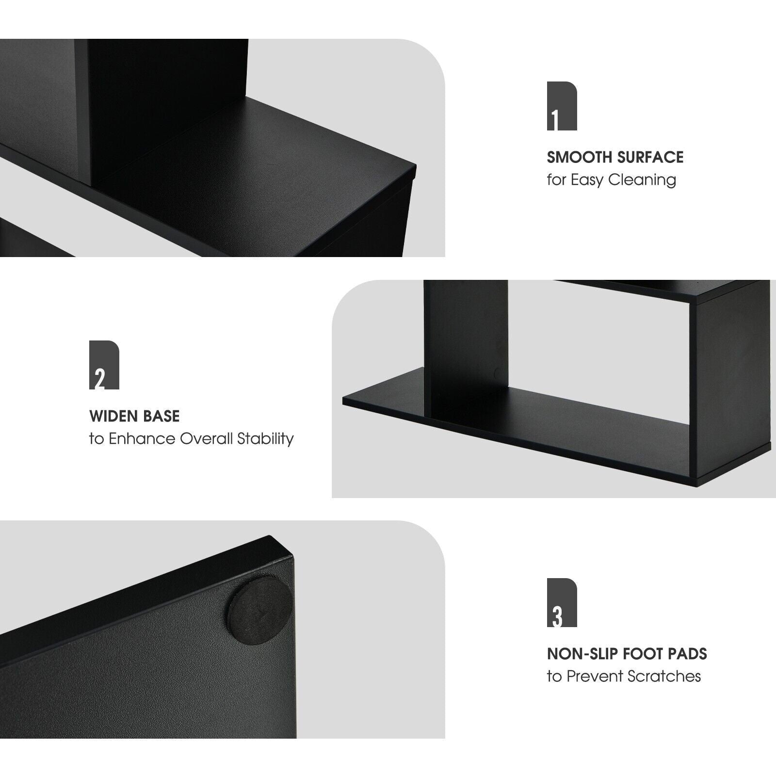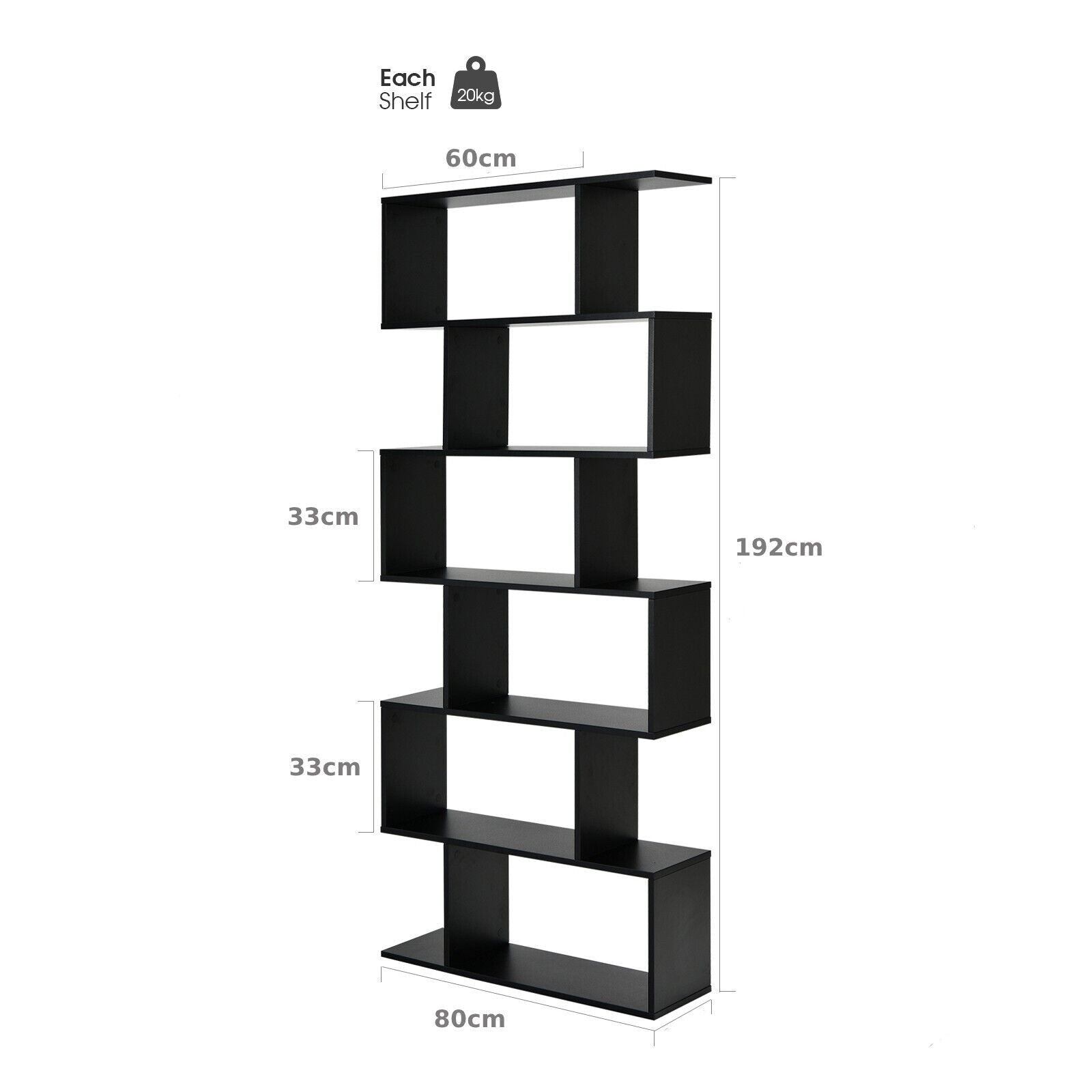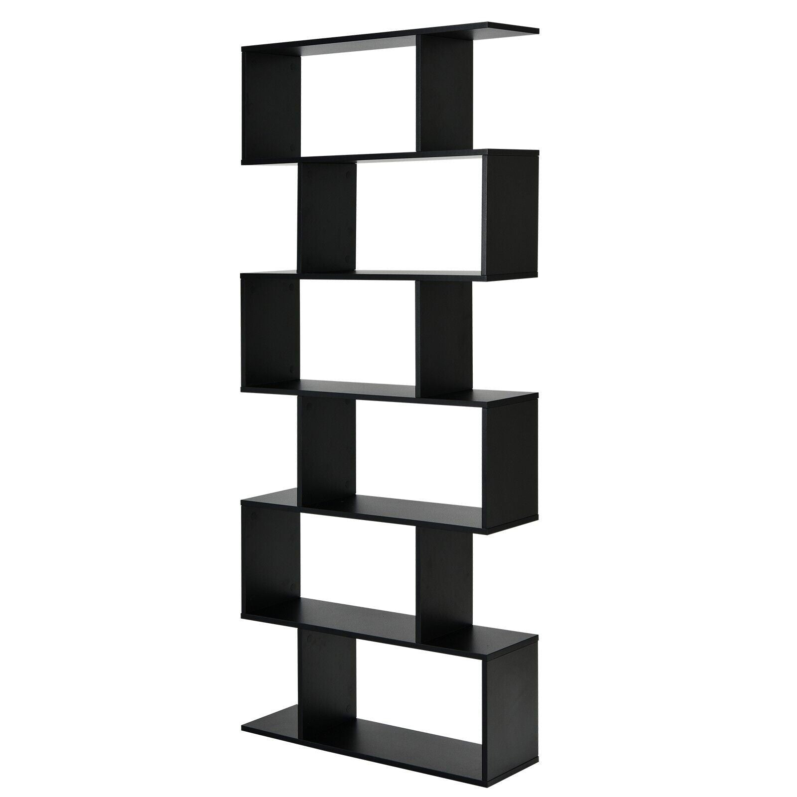 6 Tiers S-Shaped Display Bookshelf Wooden Free Standing Storage Shelf Black