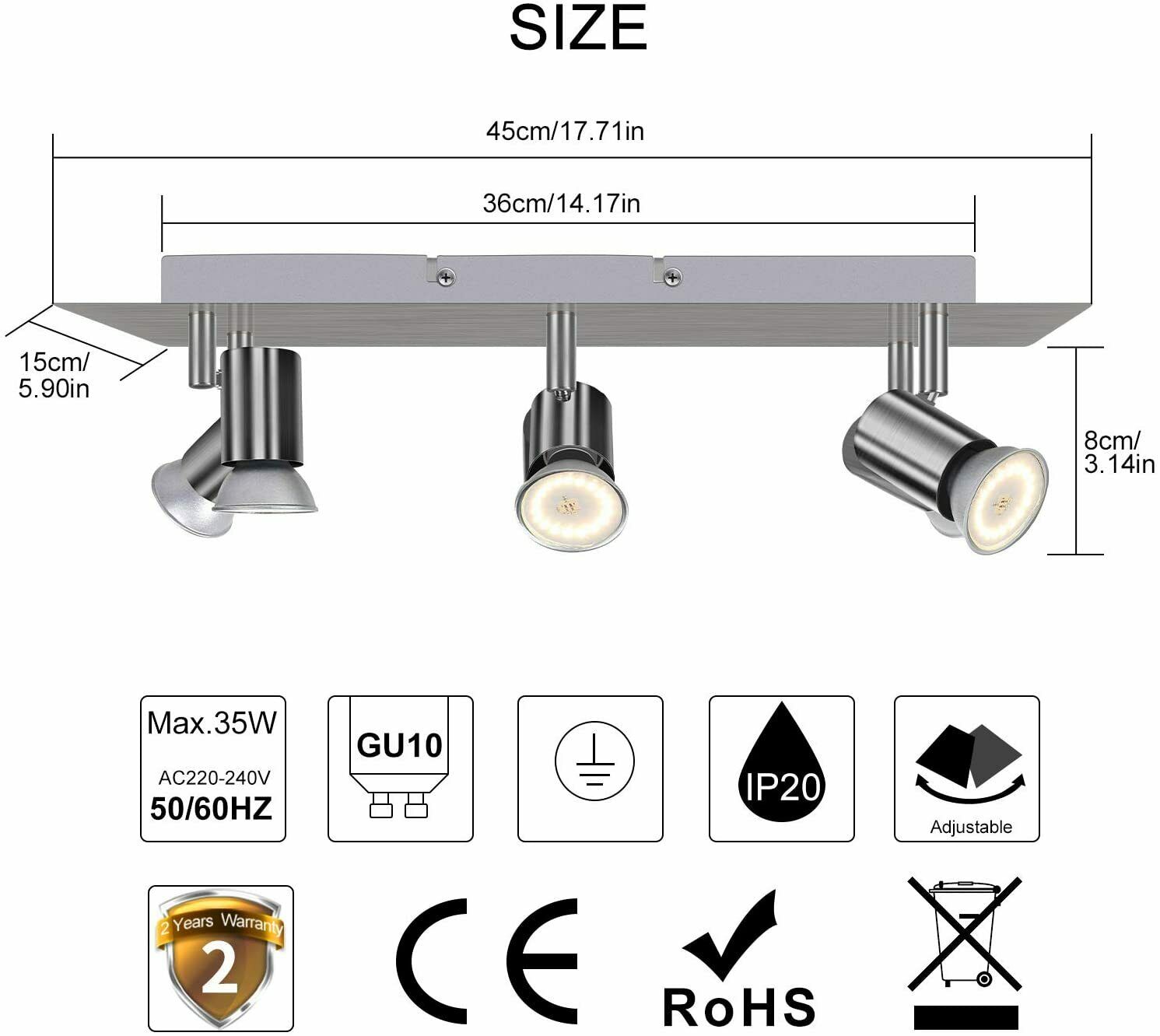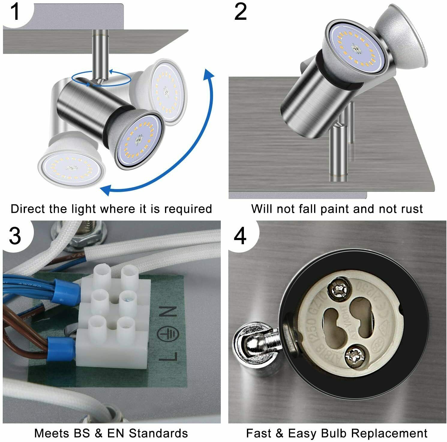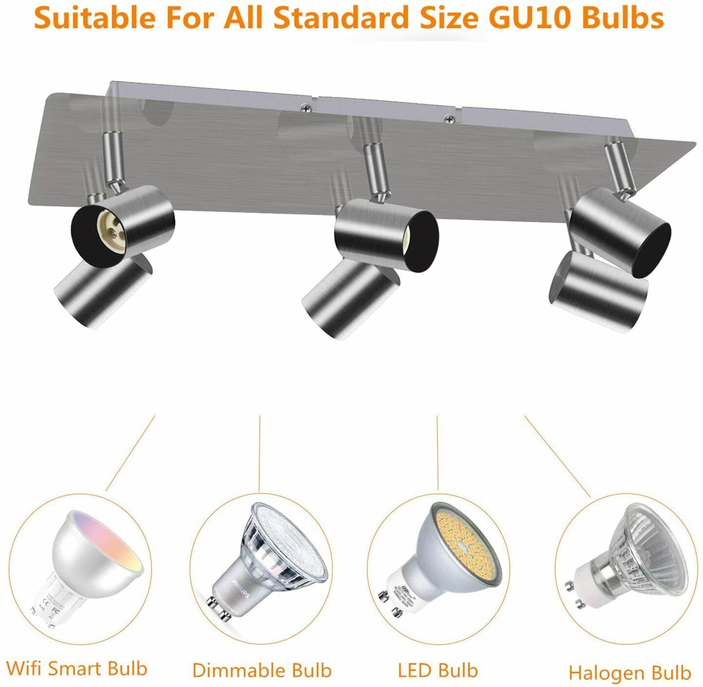 6 Way Ceiling Spotlight Adjustable Spot Light Kitchen Fitting LED GU10 Bulbs A+