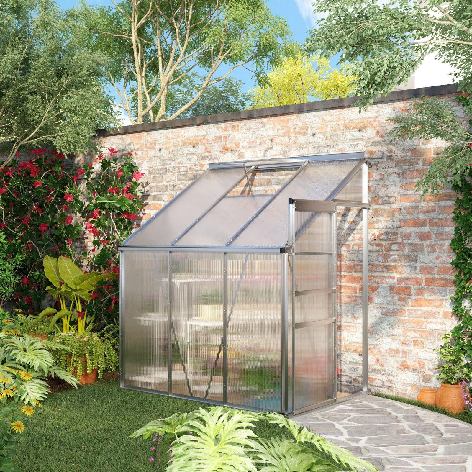 6 x 4ft Lean to Polycarbonate Greenhouse for Garden w/ Adjustable Roof Vent