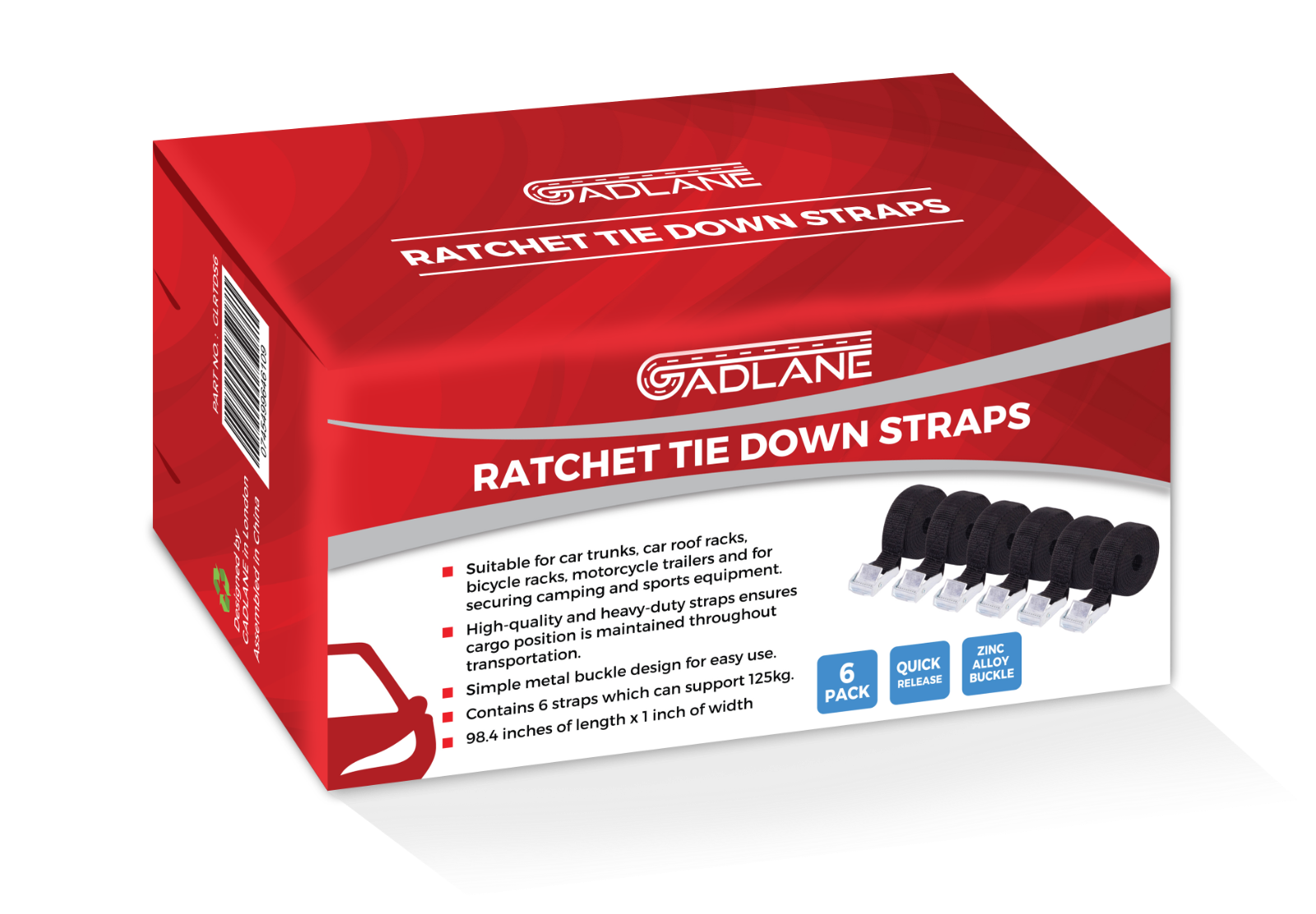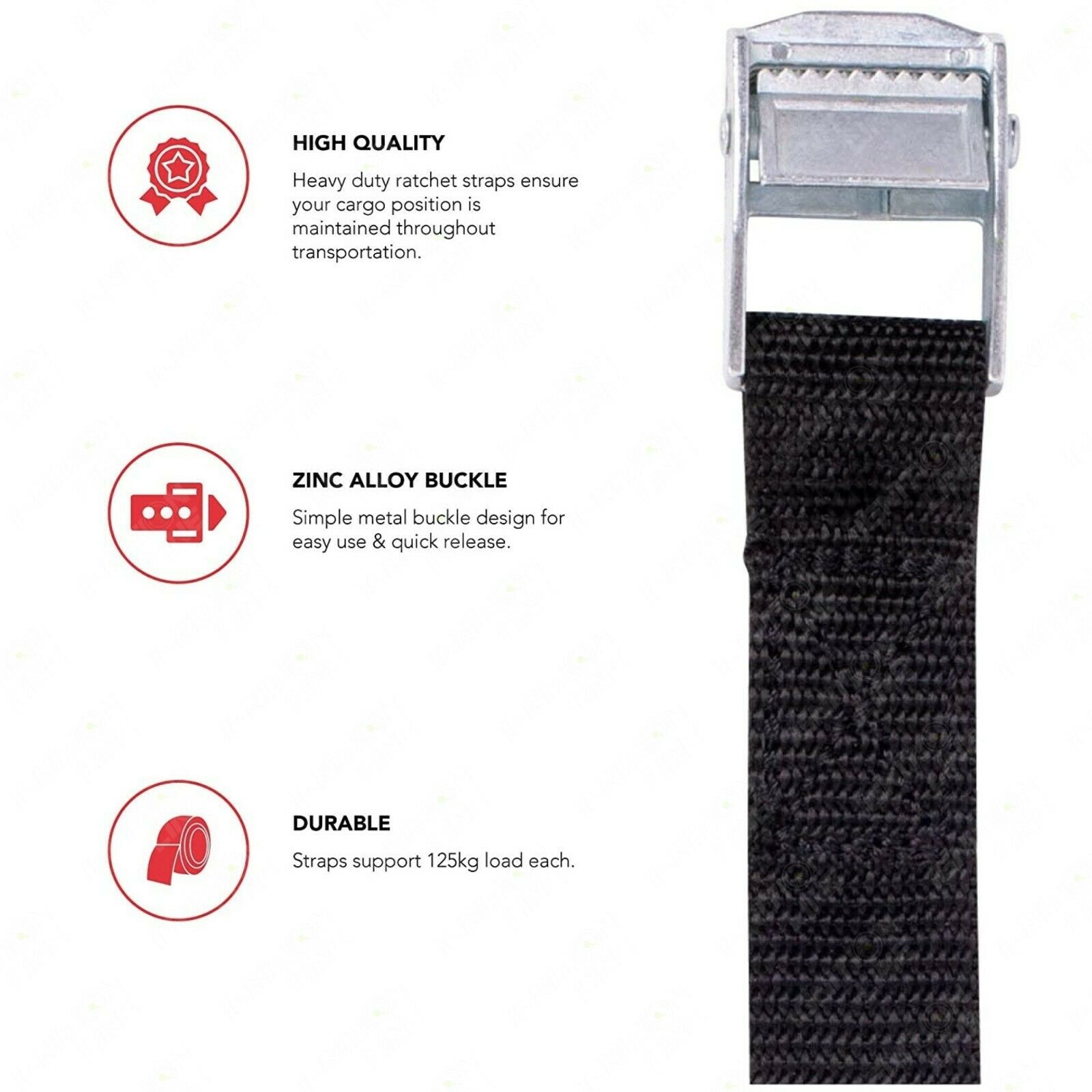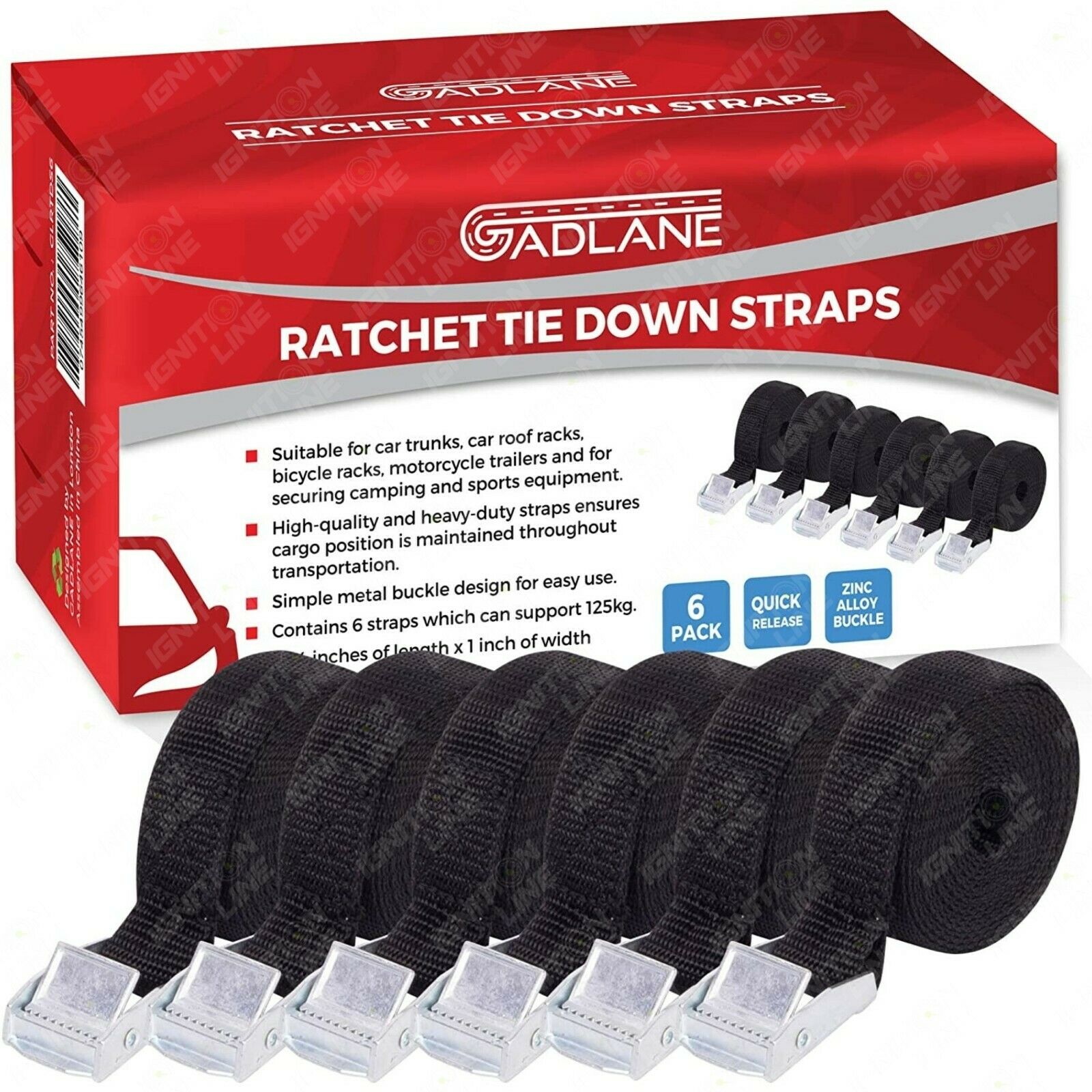 6 x Heavy Duty Ratchet Tie Down Straps Car Roof Rack Belts Quick Release 2.5M