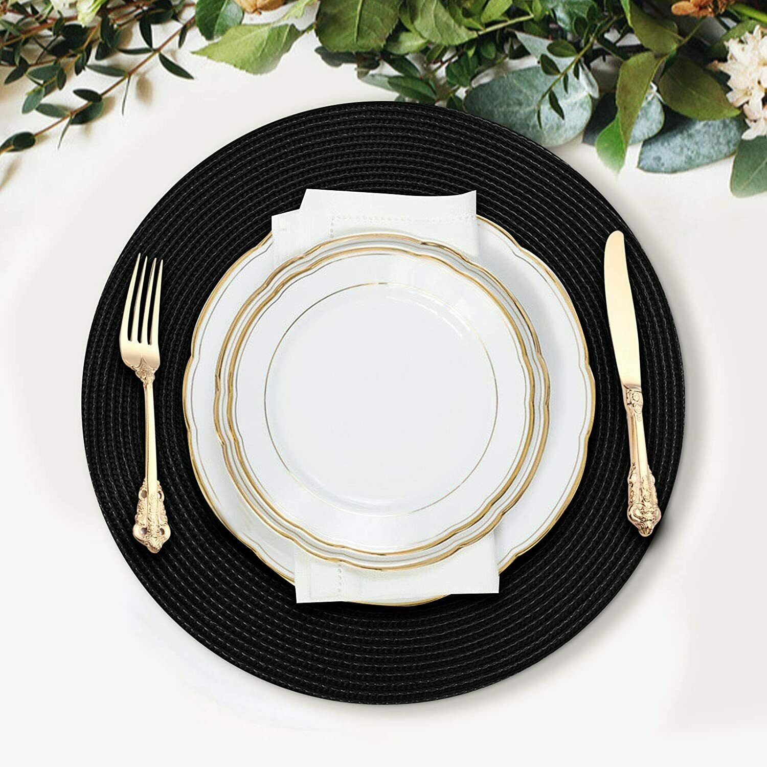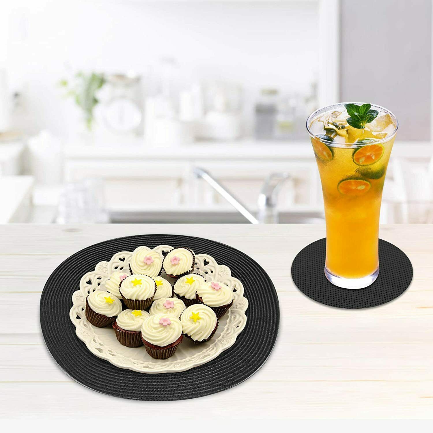 6 X Placemats & Coasters Round Non Slip Place Mat Kitchen Dining Table Wedding