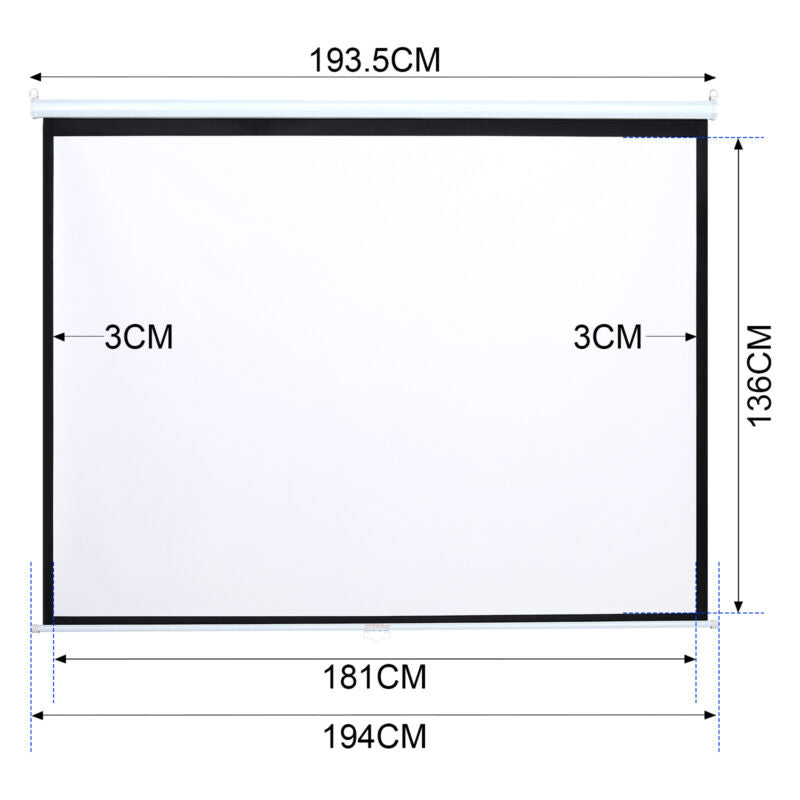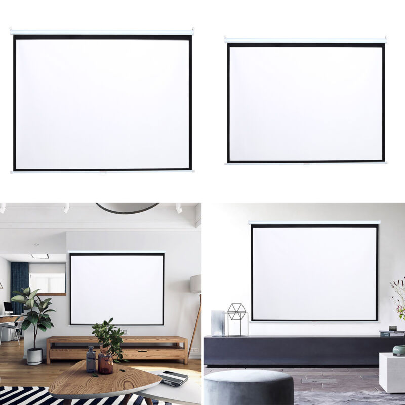 60-100 in 4:3 HD Manual Pull Down Projector Screen Matt White Home Cinema Screen