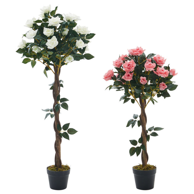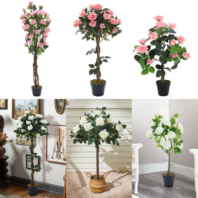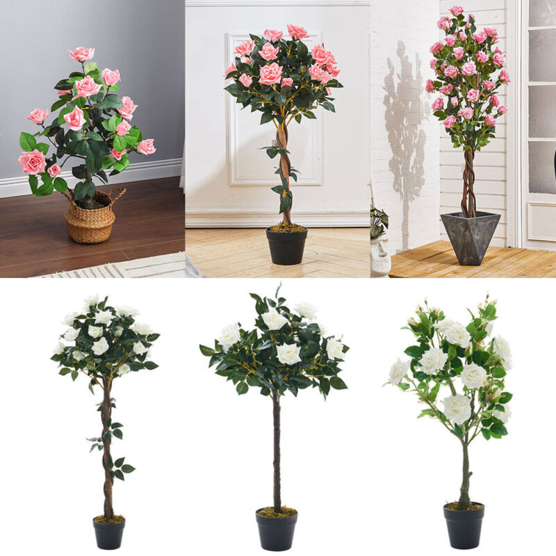 60/120/150cm Large Artificial Rose Tree Potted Plant Pink Flowers Garden Porch
