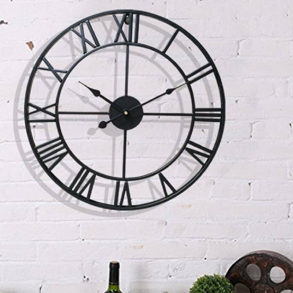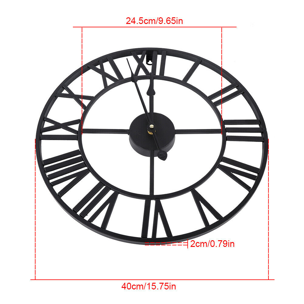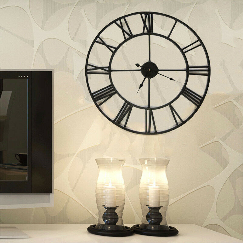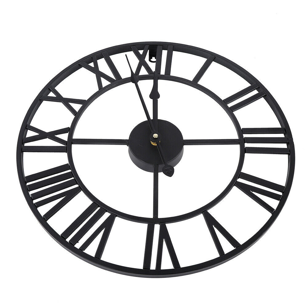 60/40cm Large Round Skeleton Roman Numeral Modern Home Kitchen Wall Clock Black