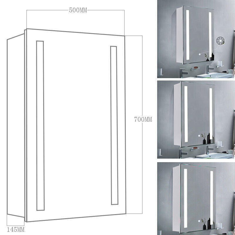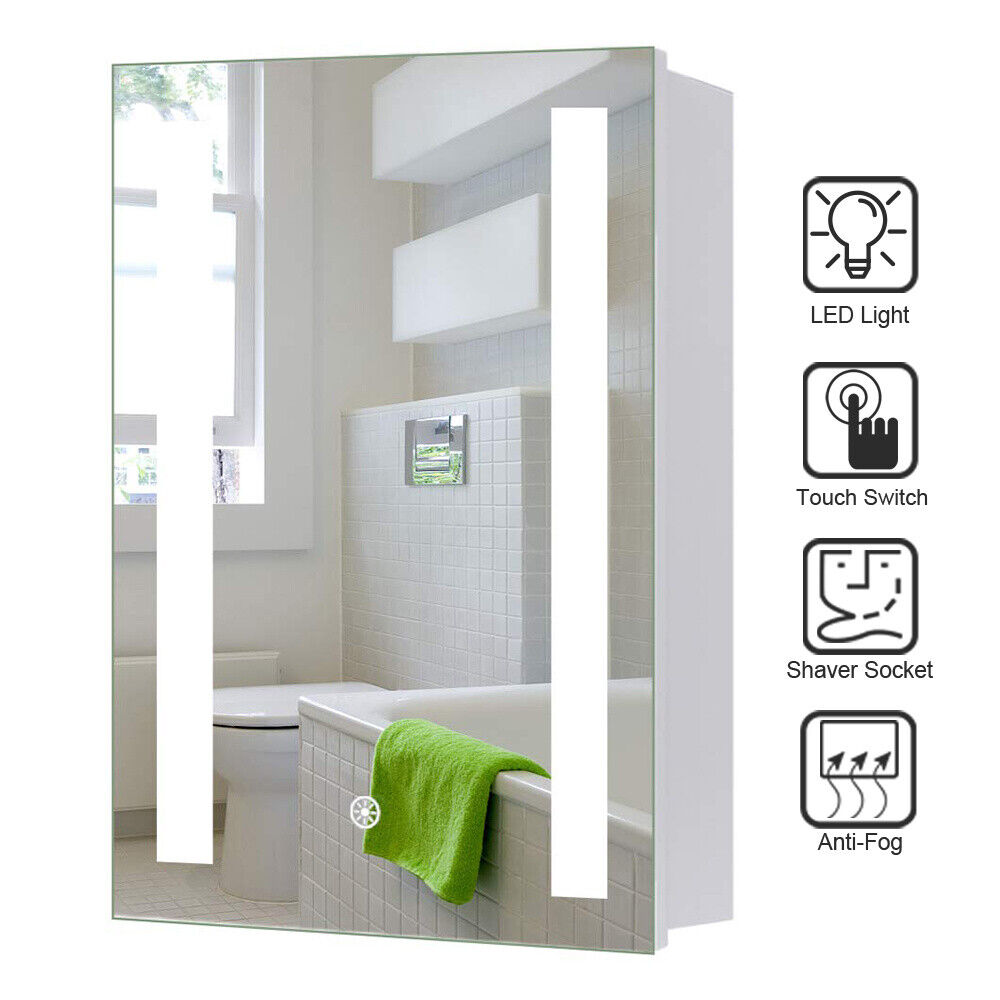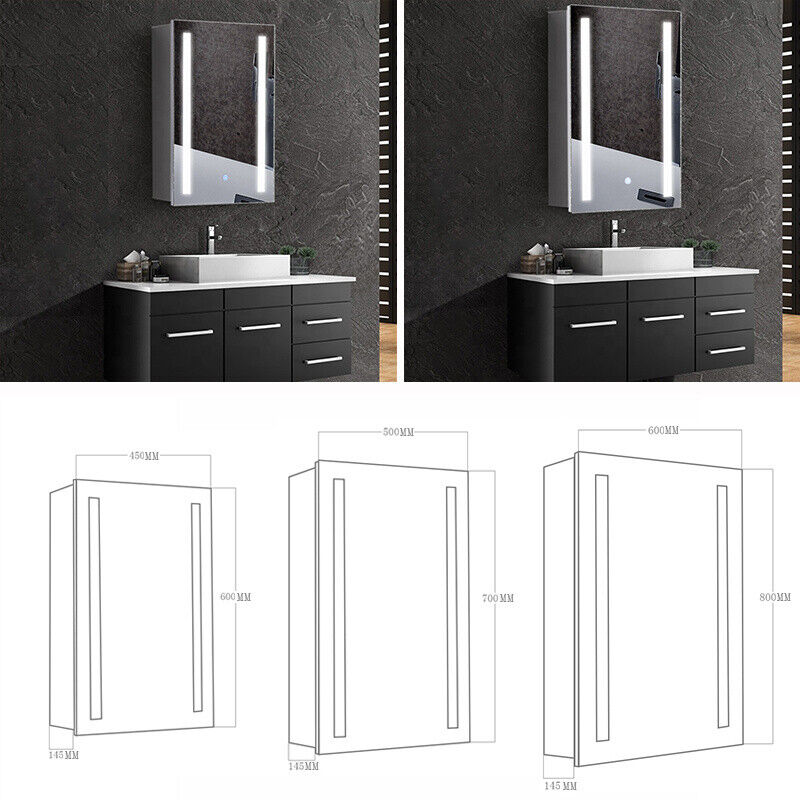 60/70/80cm Bathroom LED Mirror Lights Cabinet with Shaver socket, Demister,Touch