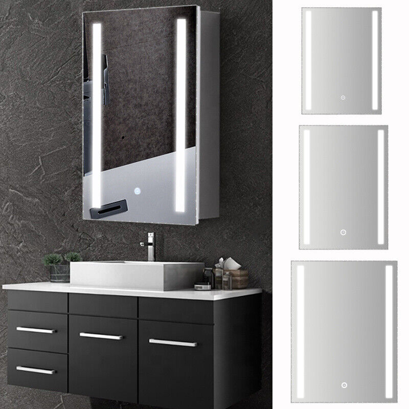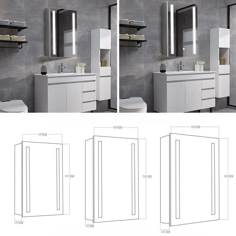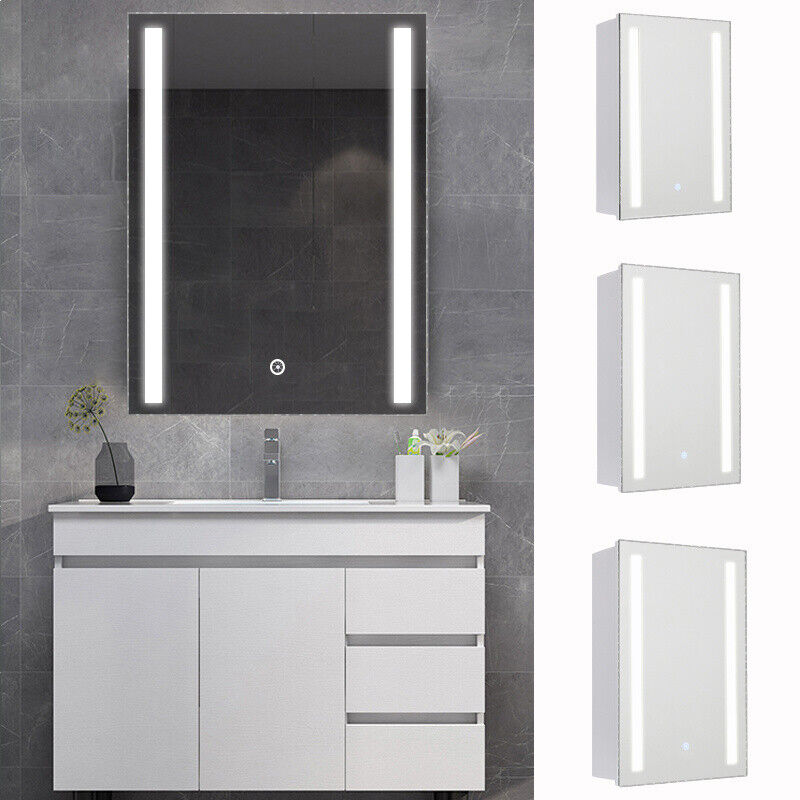 60/70/80cm LED Bathroom Mirror Cabinet w/Demister Pad Shaver Socket Wall Mounted