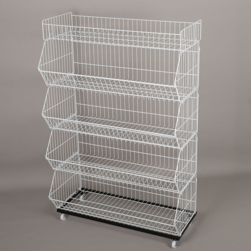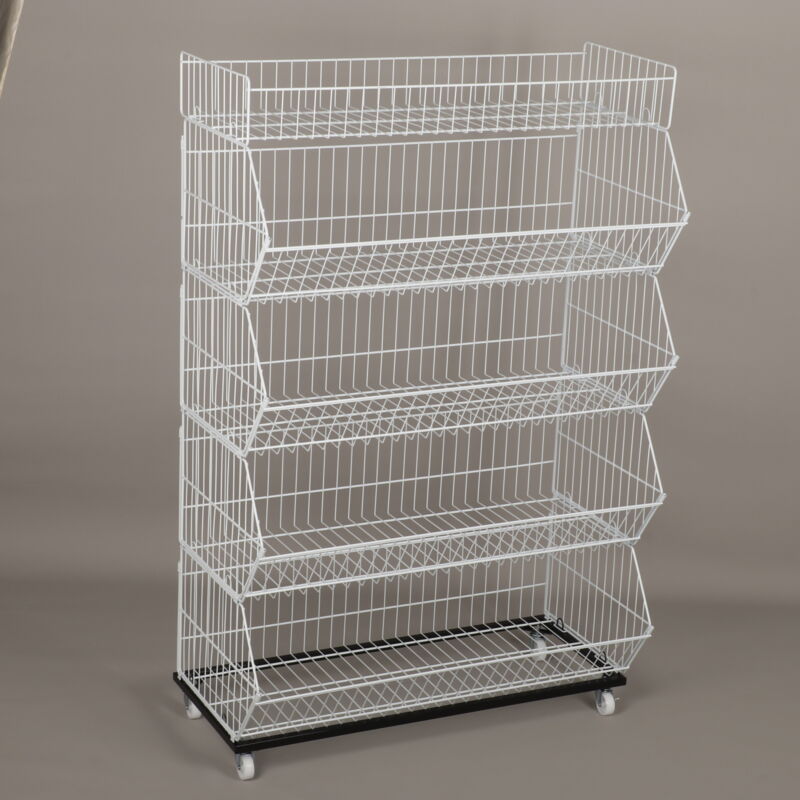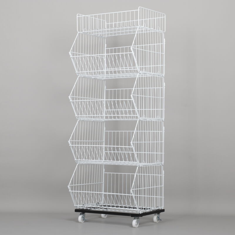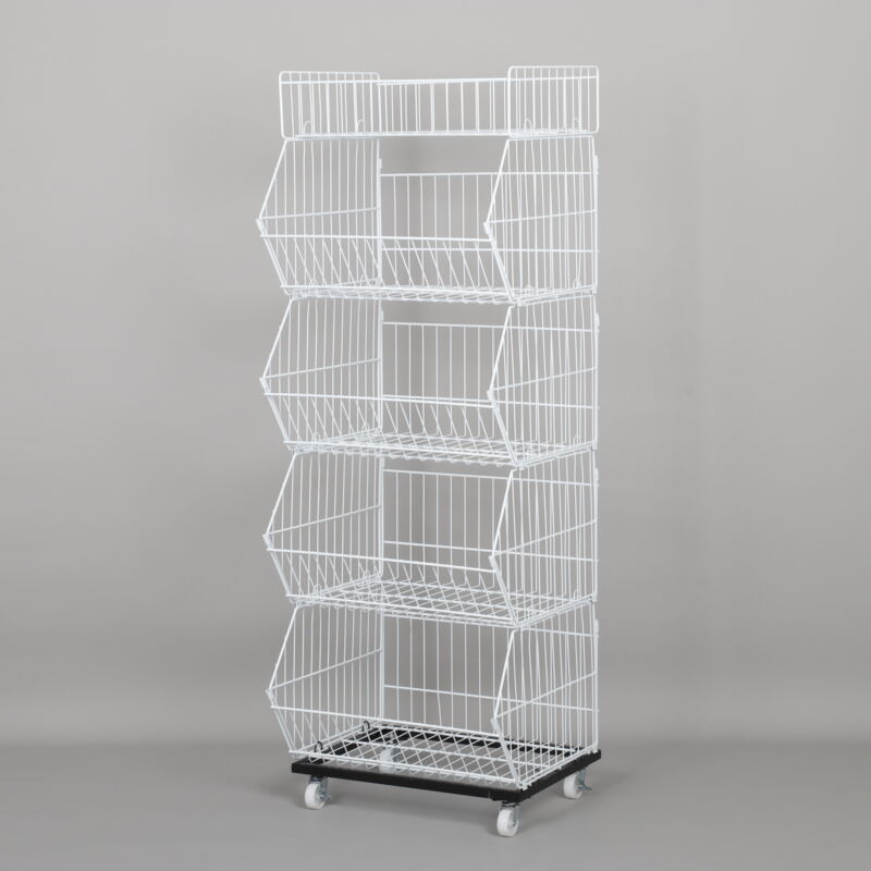 60/90CM Stackable Wire Storage Bin Rack Veg Fruit Snack Basket For Retail Shop