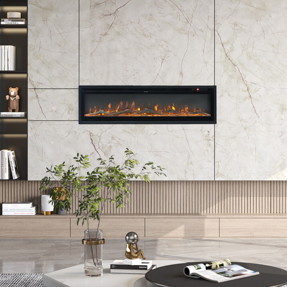 60" Black Framed Fireplace 9 Color LED Wall/Inset Electric Fire Ice Flame Effect