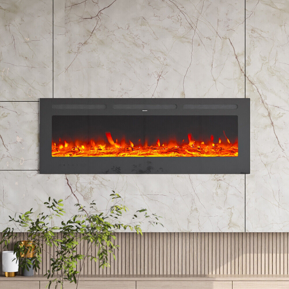 60" Electric Fireplace Adjustable Flame Heater Wall Mounted Bed Room Burner Heat