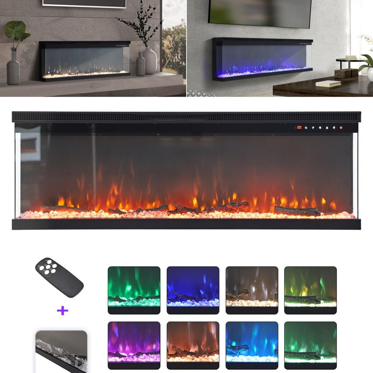 60 INCH HD+ Media 3 Sided Inset Wall/Freestand Electric Fireplace with LED Light