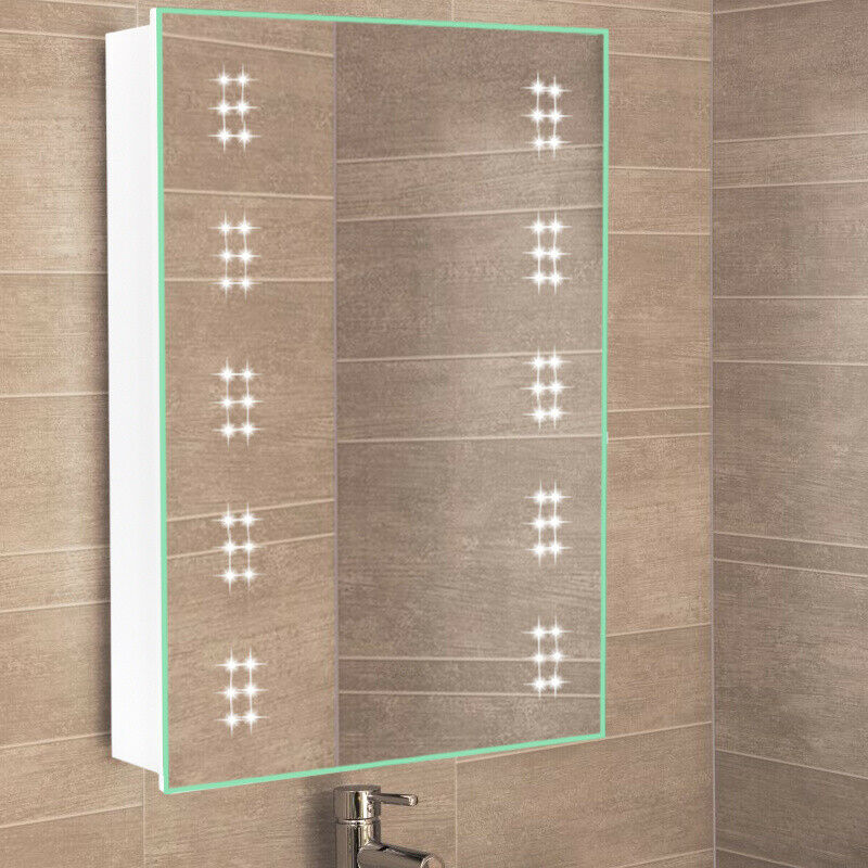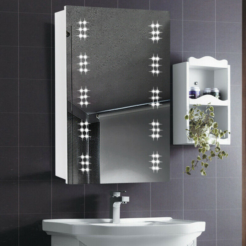 60 LED Bathroom Mirror Cabinet 70*50cm Illuminated Sensor Shaver Socket Demister