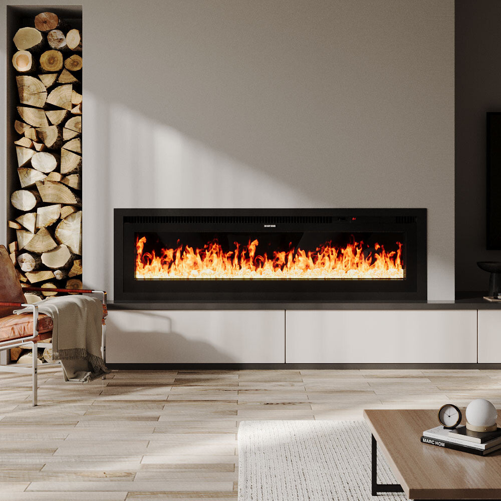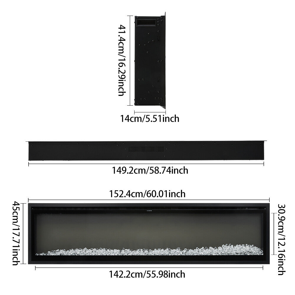 60'' LED Fireplace Recessed Wall Fire WallMounted/Standing Electric Heater Timer