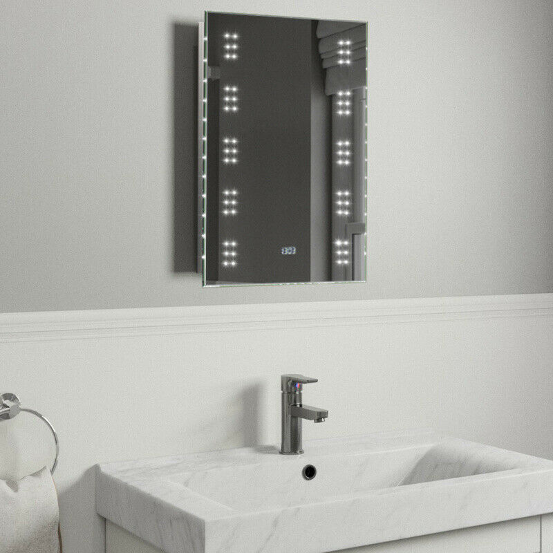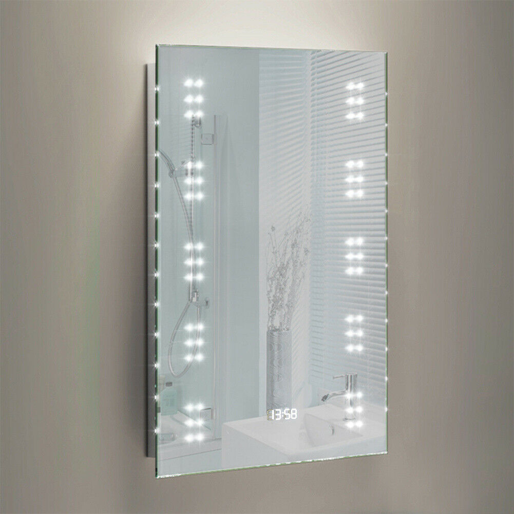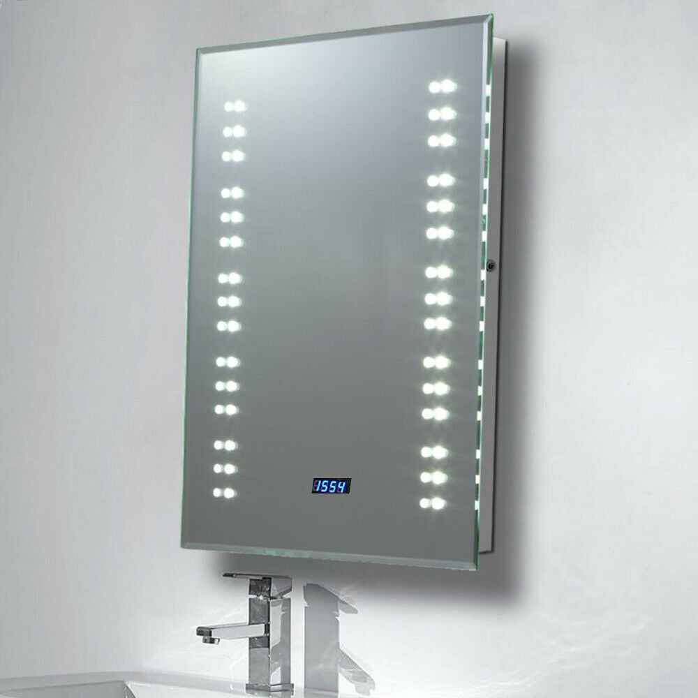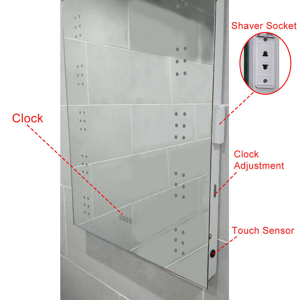 60 LED Illuminated Mirror Bathroom Demister Pad Clock Shaver Socket Sensor UK