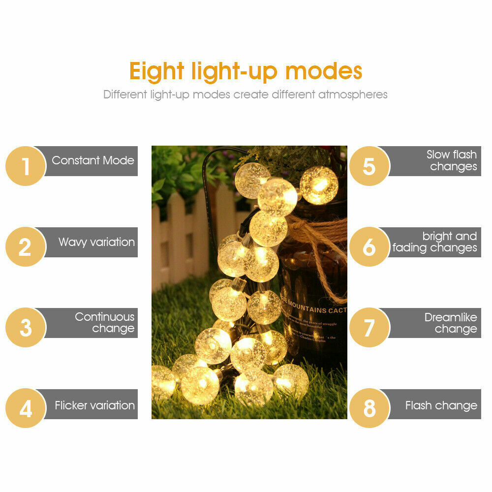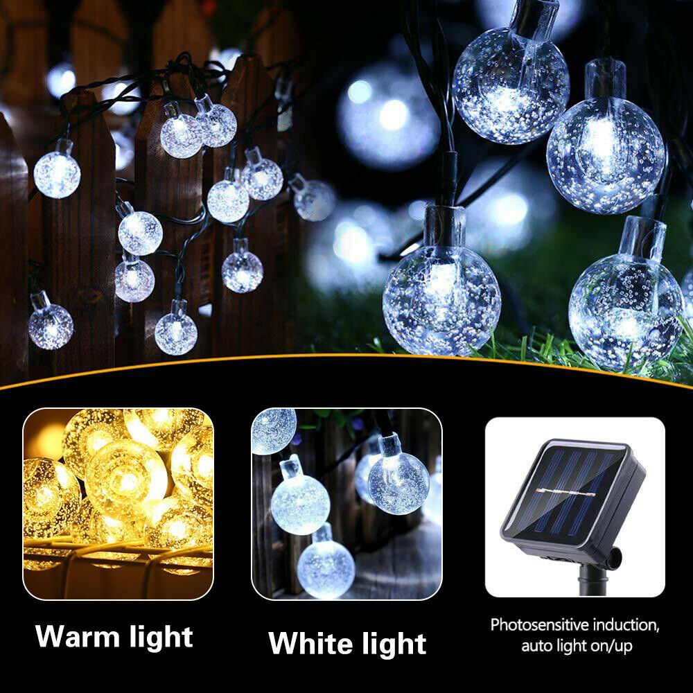 60 LED SOLAR POWERED RETRO BULB STRING LIGHTS GARDEN OUTDOOR FAIRY SUMMER LAMP