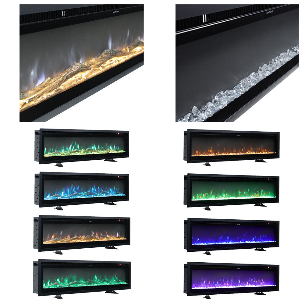60" Recessed Wall-Mount LED Fireplace Insert Electric Fire Free Standing Heaters