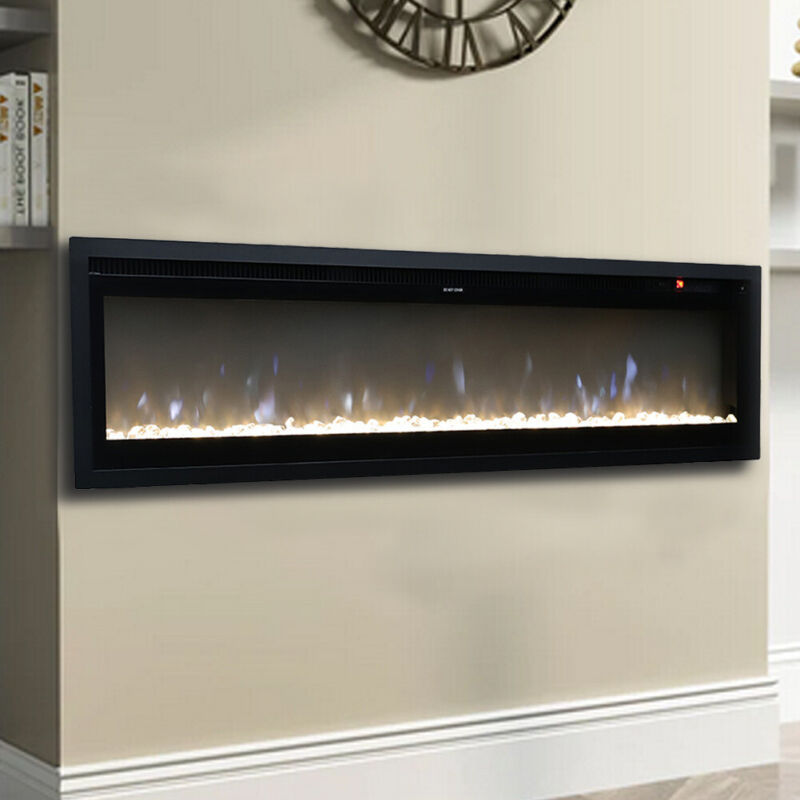 60" Recessed Wall-Mounted Electric LED Fireplace Insert Fire Standing Heaters UK